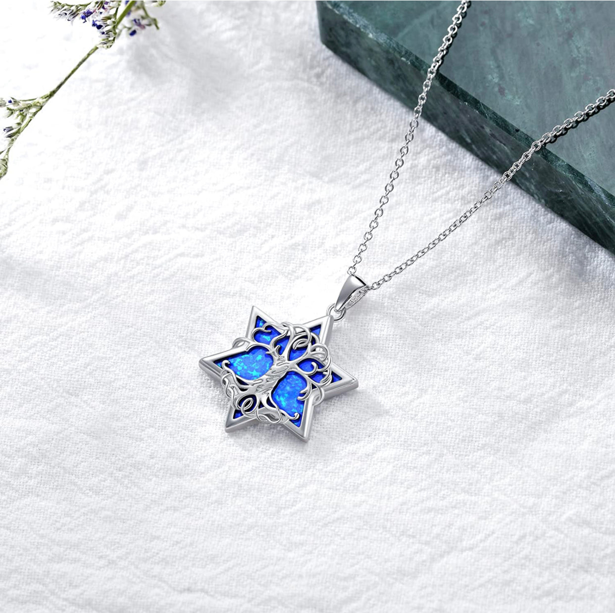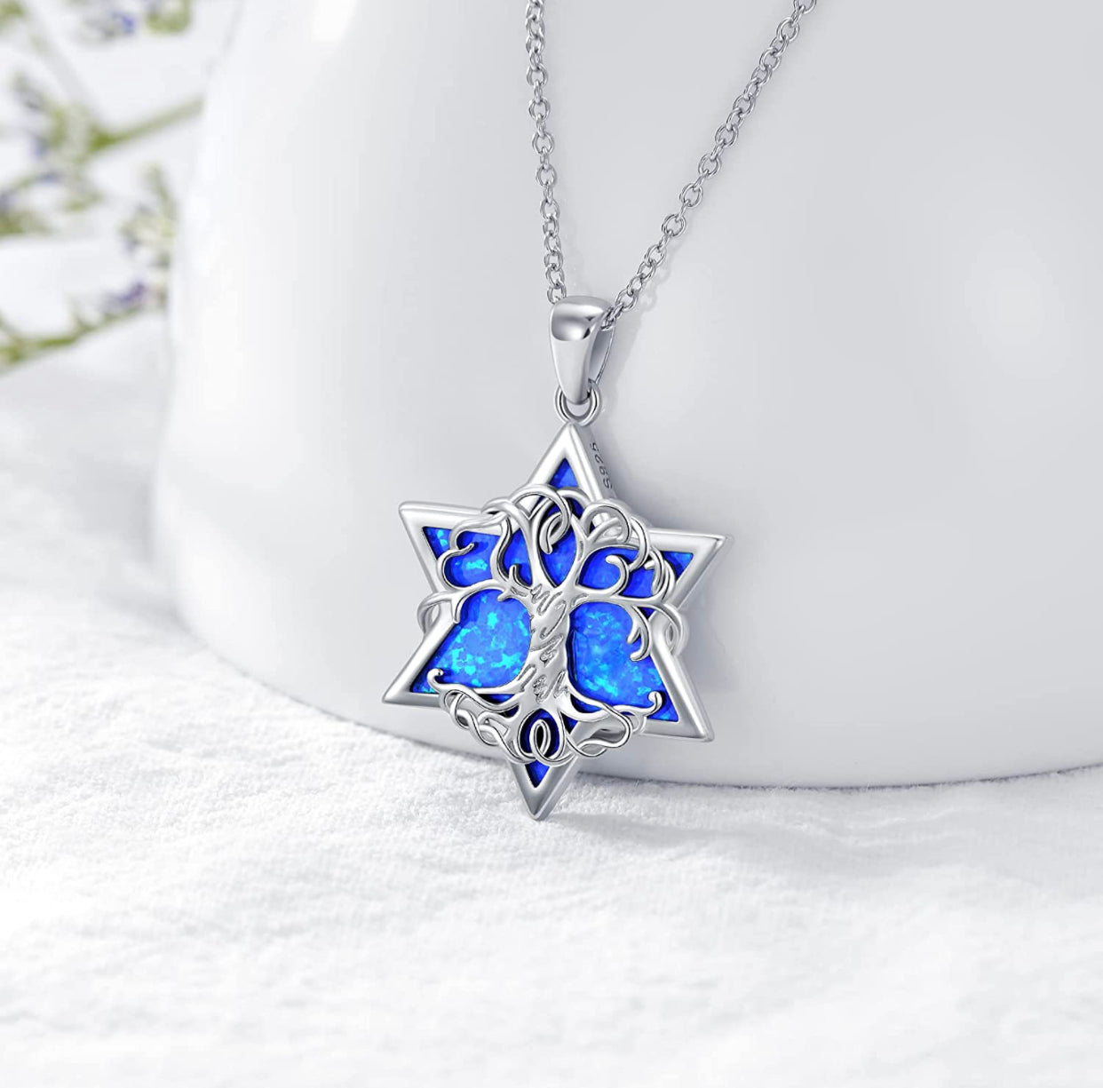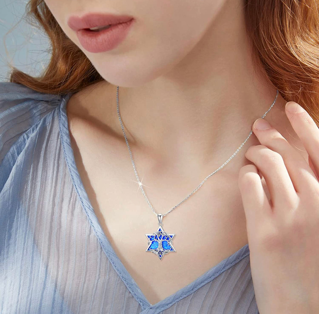 Collar de árbol de la vida de plata de ley S925 con concha de abulón y meguen David, regalo para hombres, mujeres, esposa, hija, adolescentes