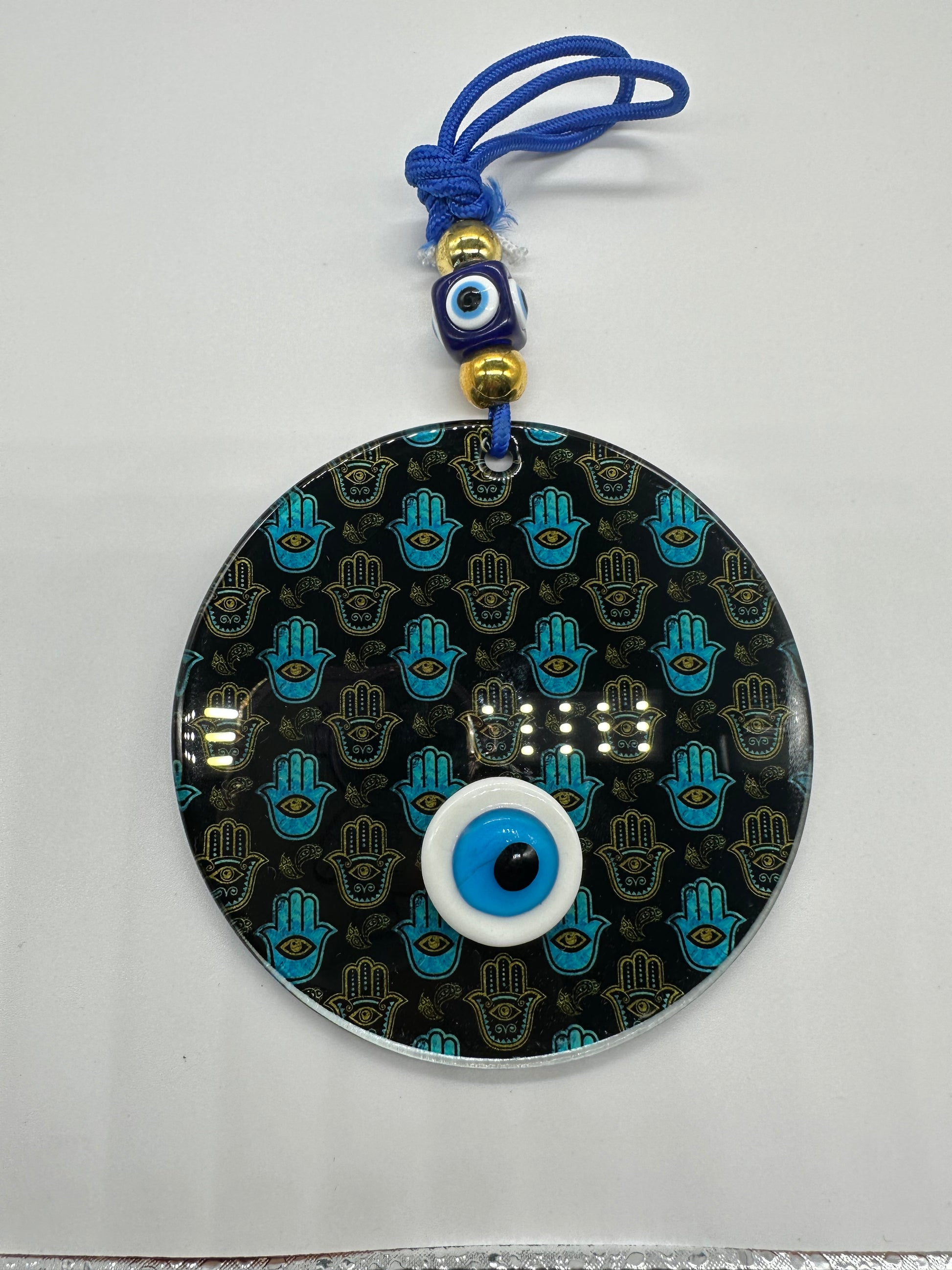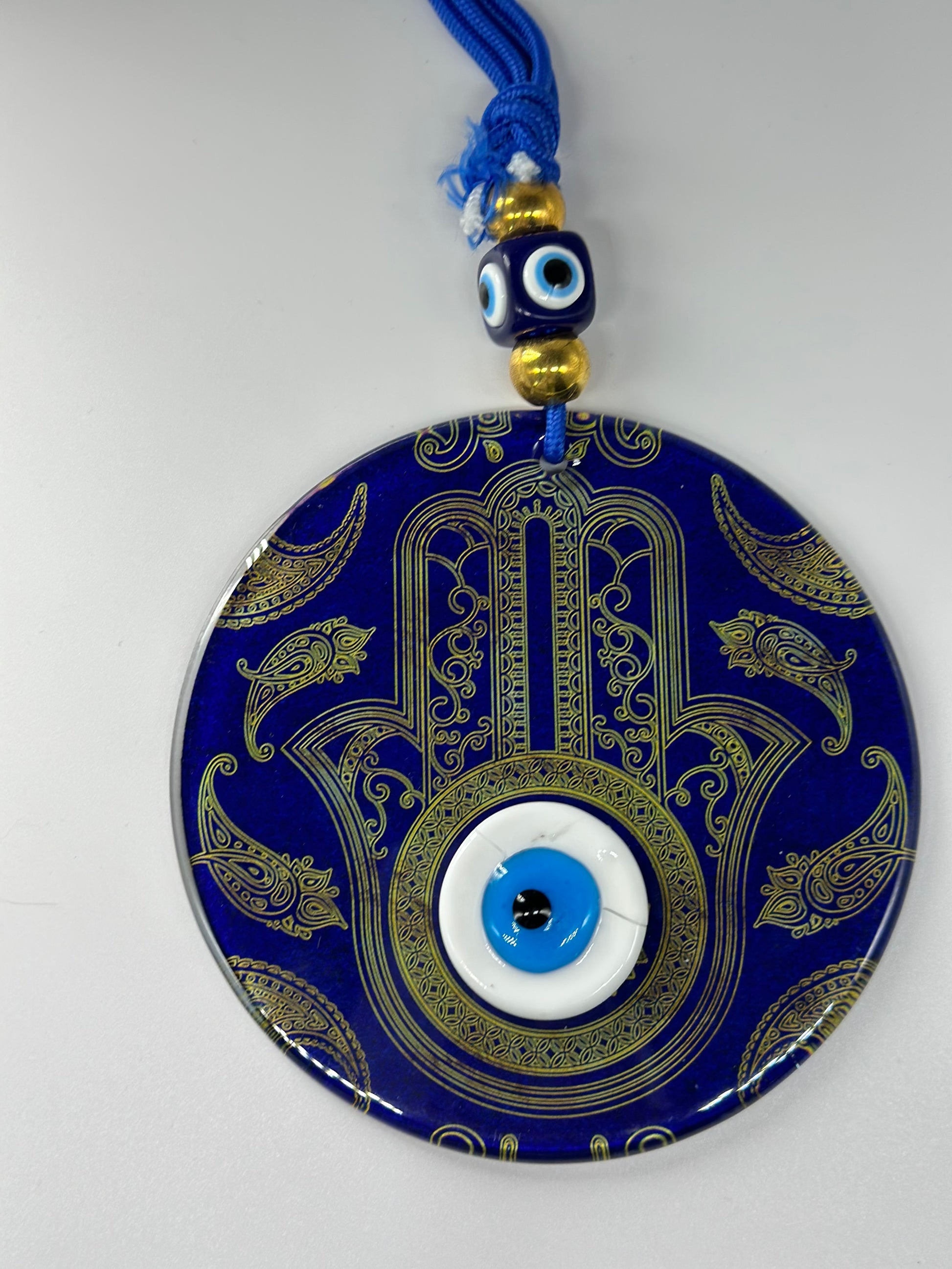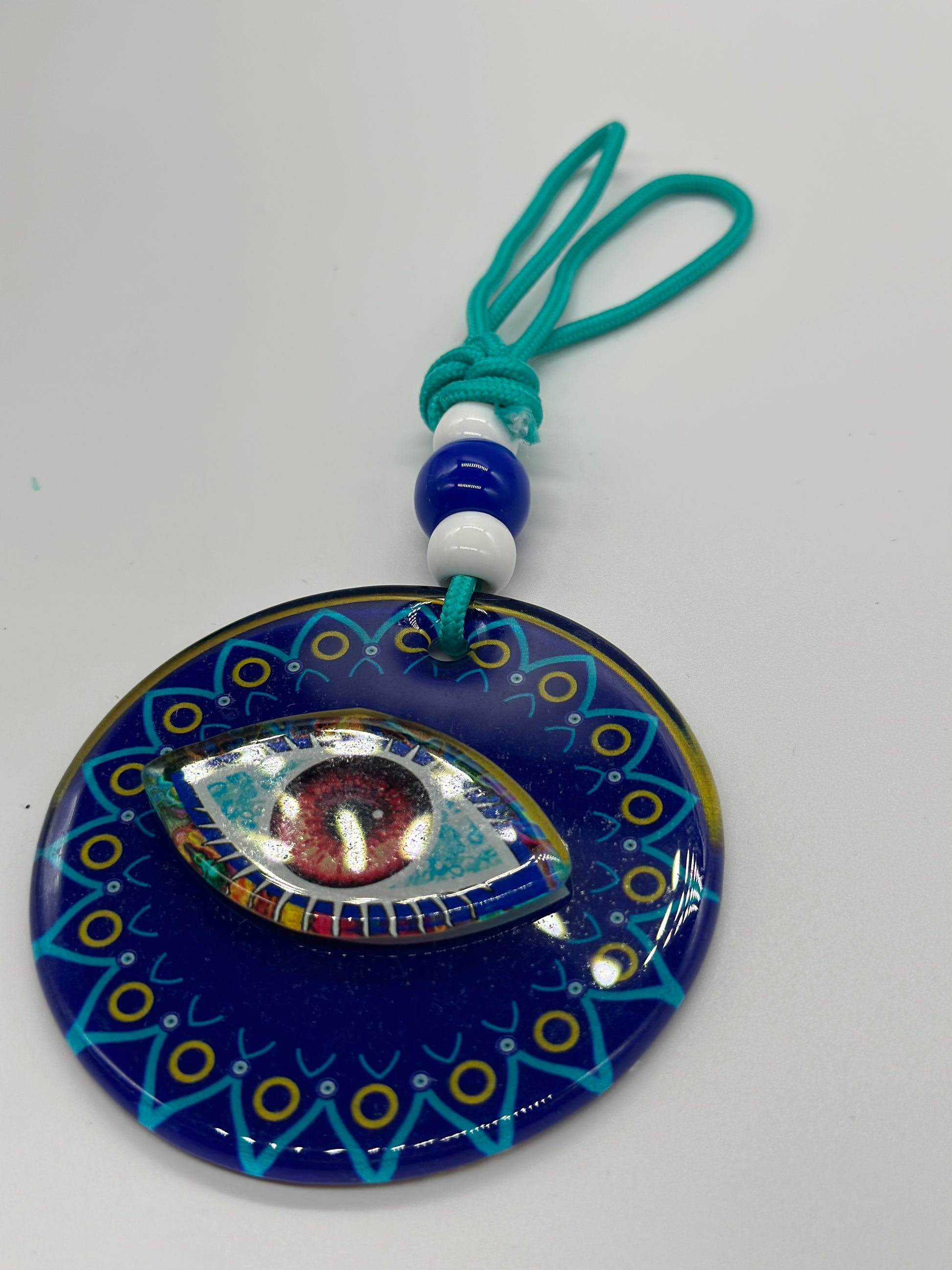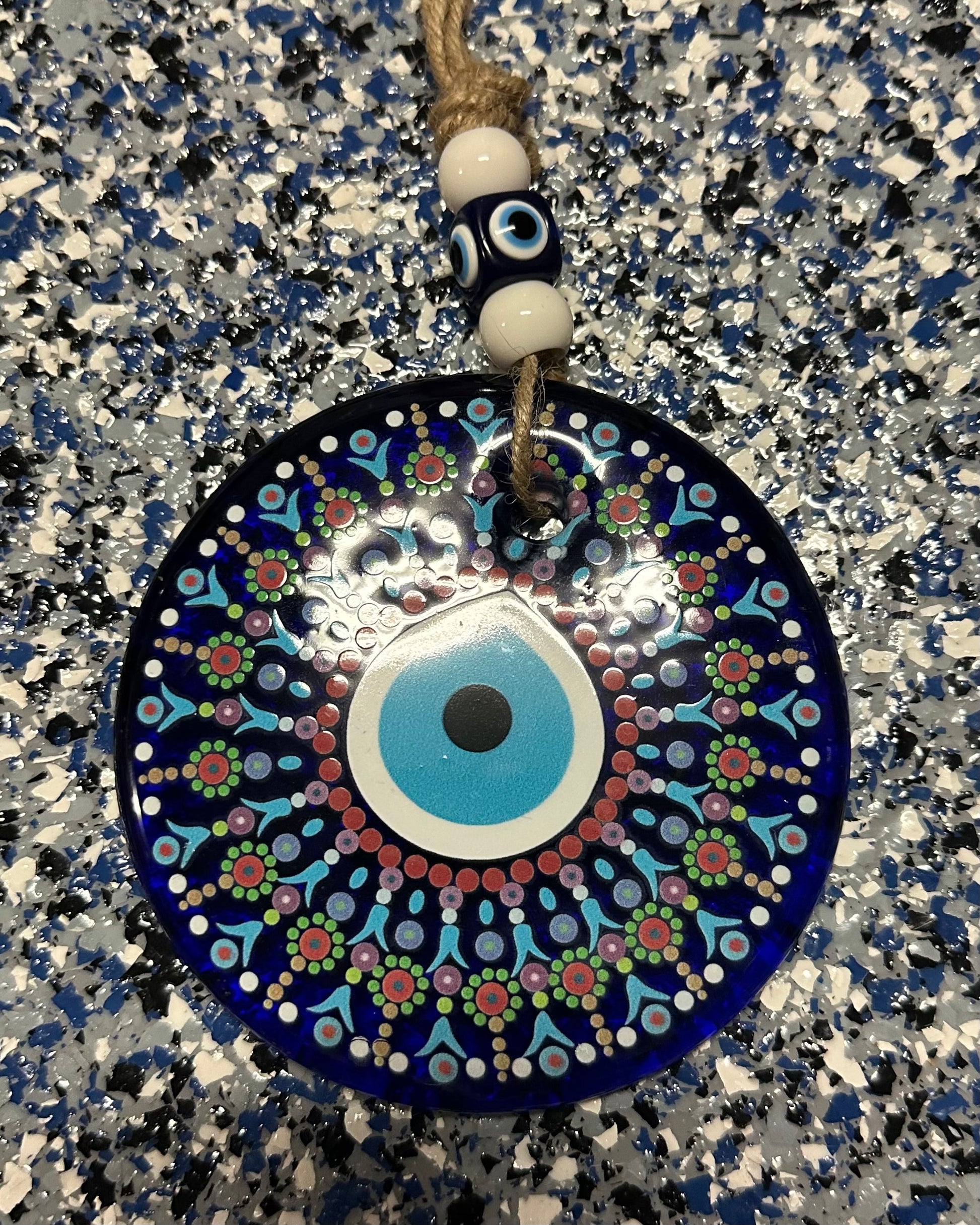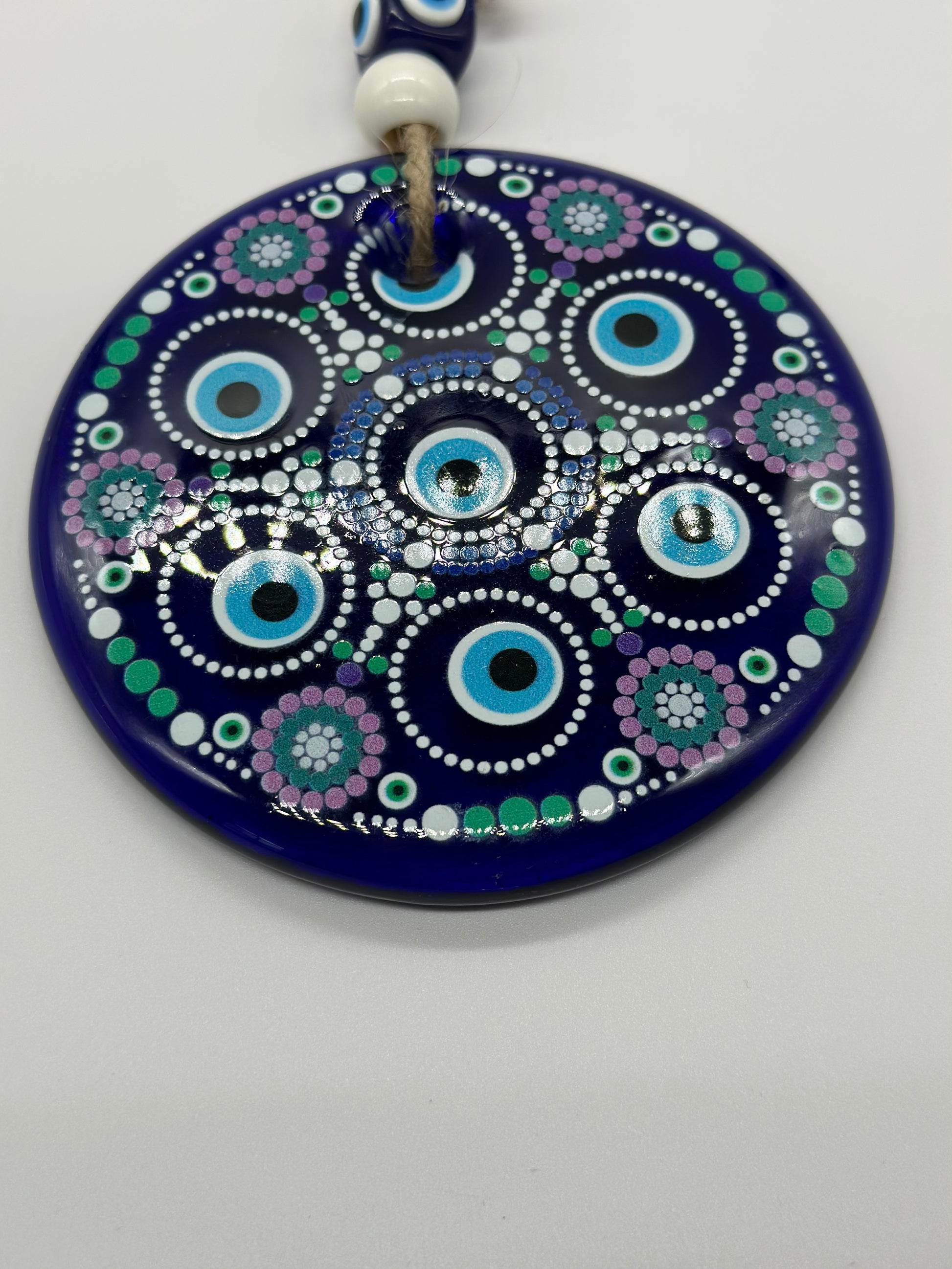 Simbología de vidrio pintados a manos y elaborados con la simbología en contra del AYIN Hará