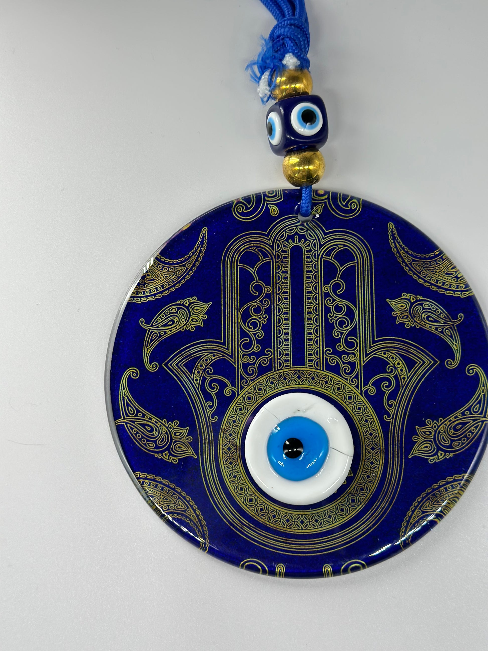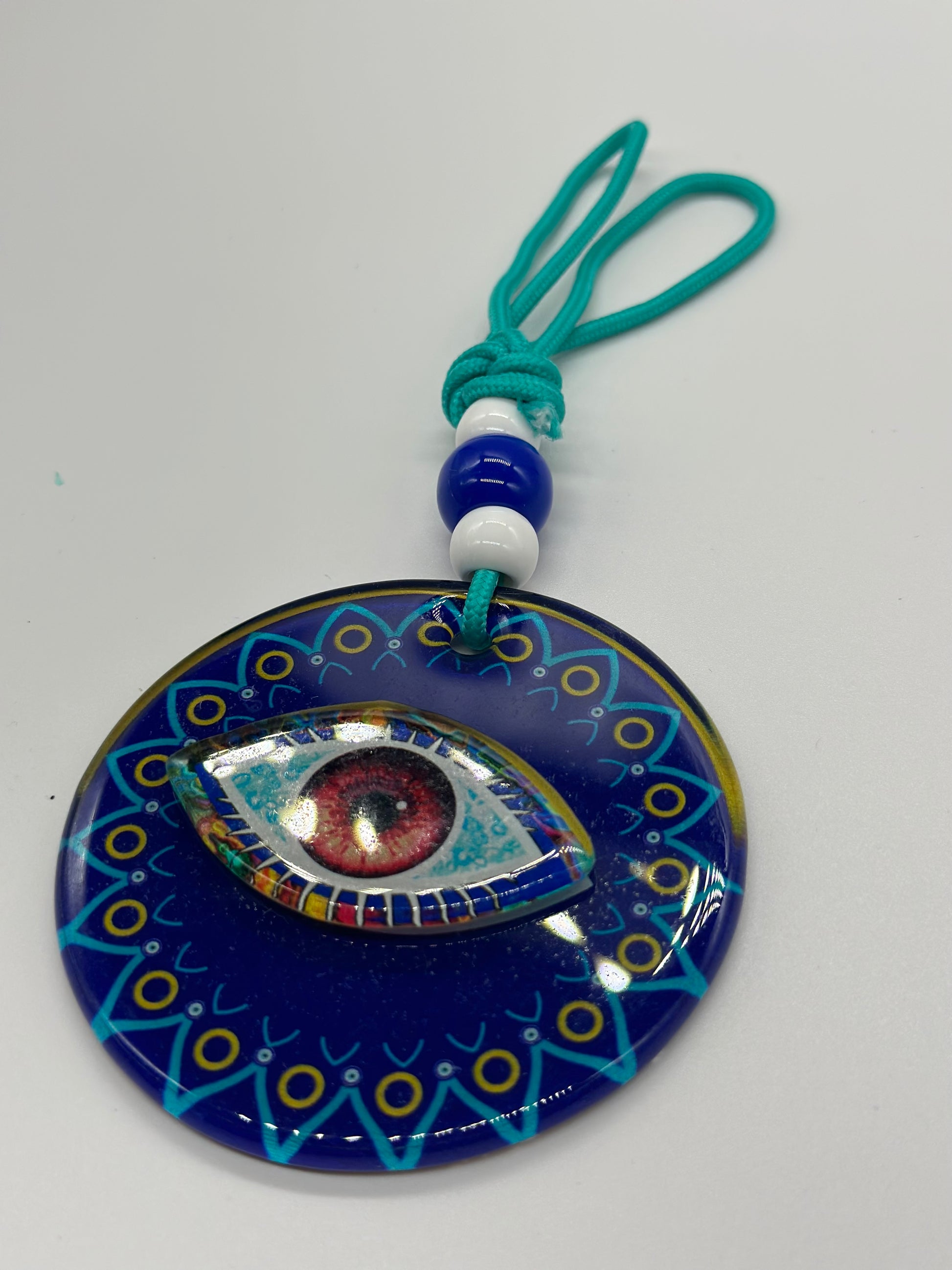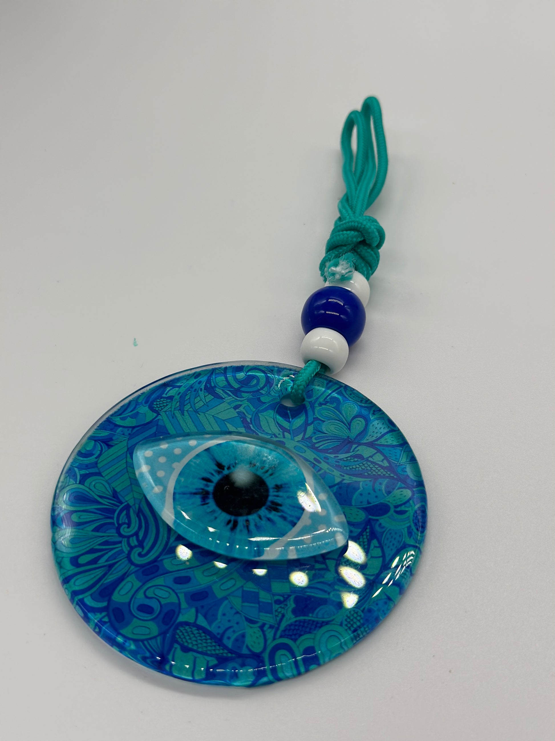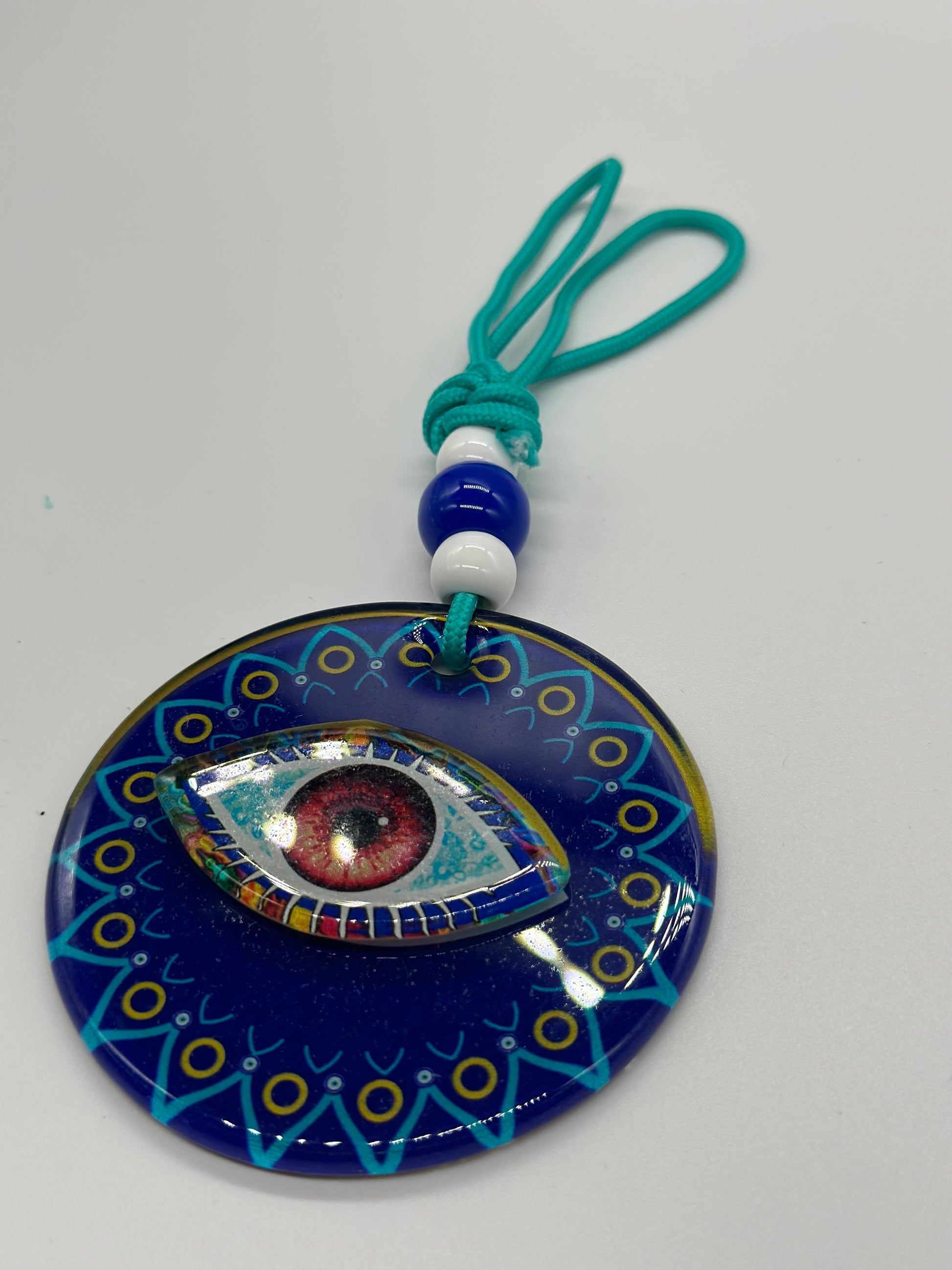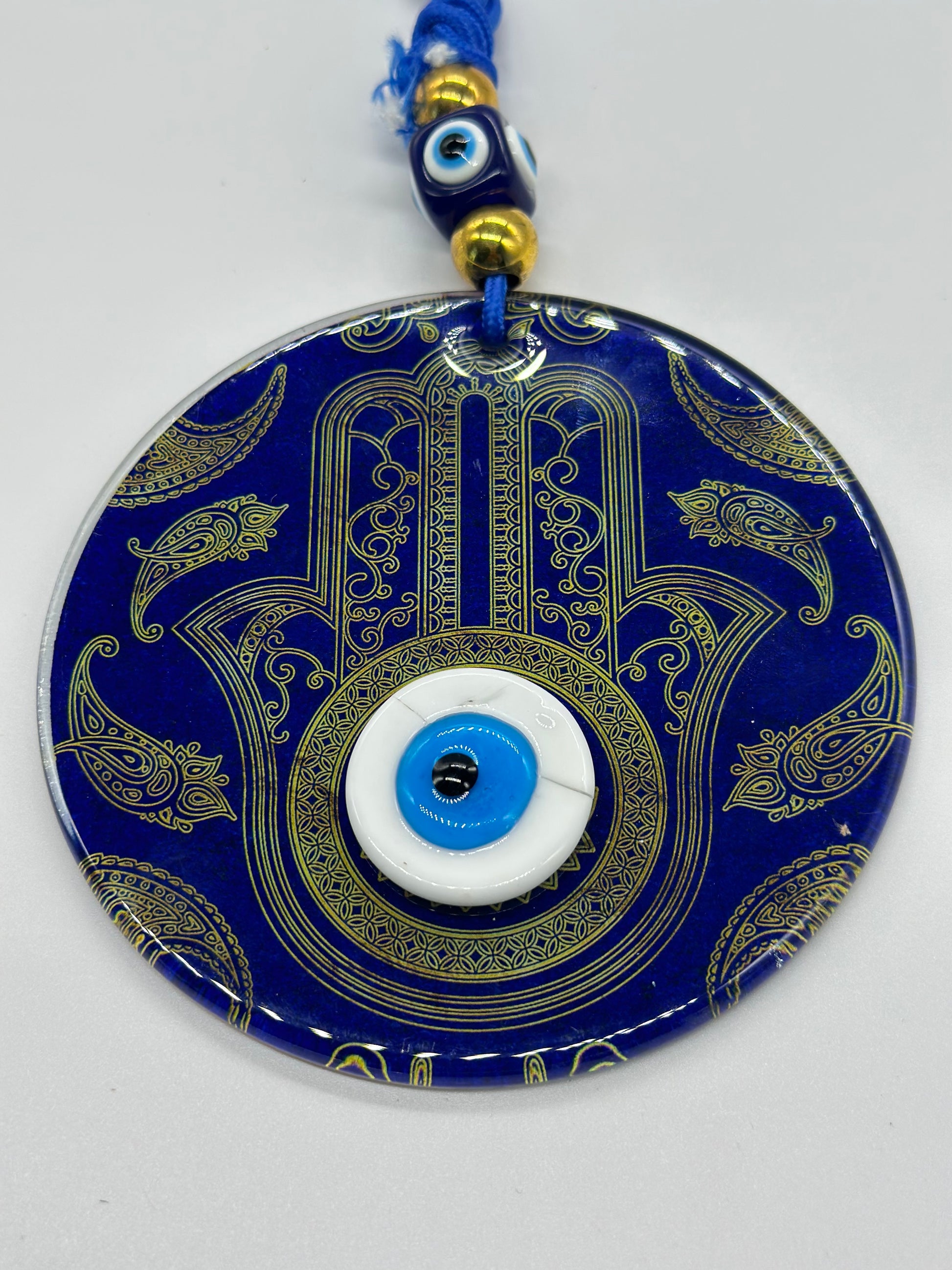 Simbología de vidrio pintados a manos y elaborados con la simbología en contra del AYIN Hará