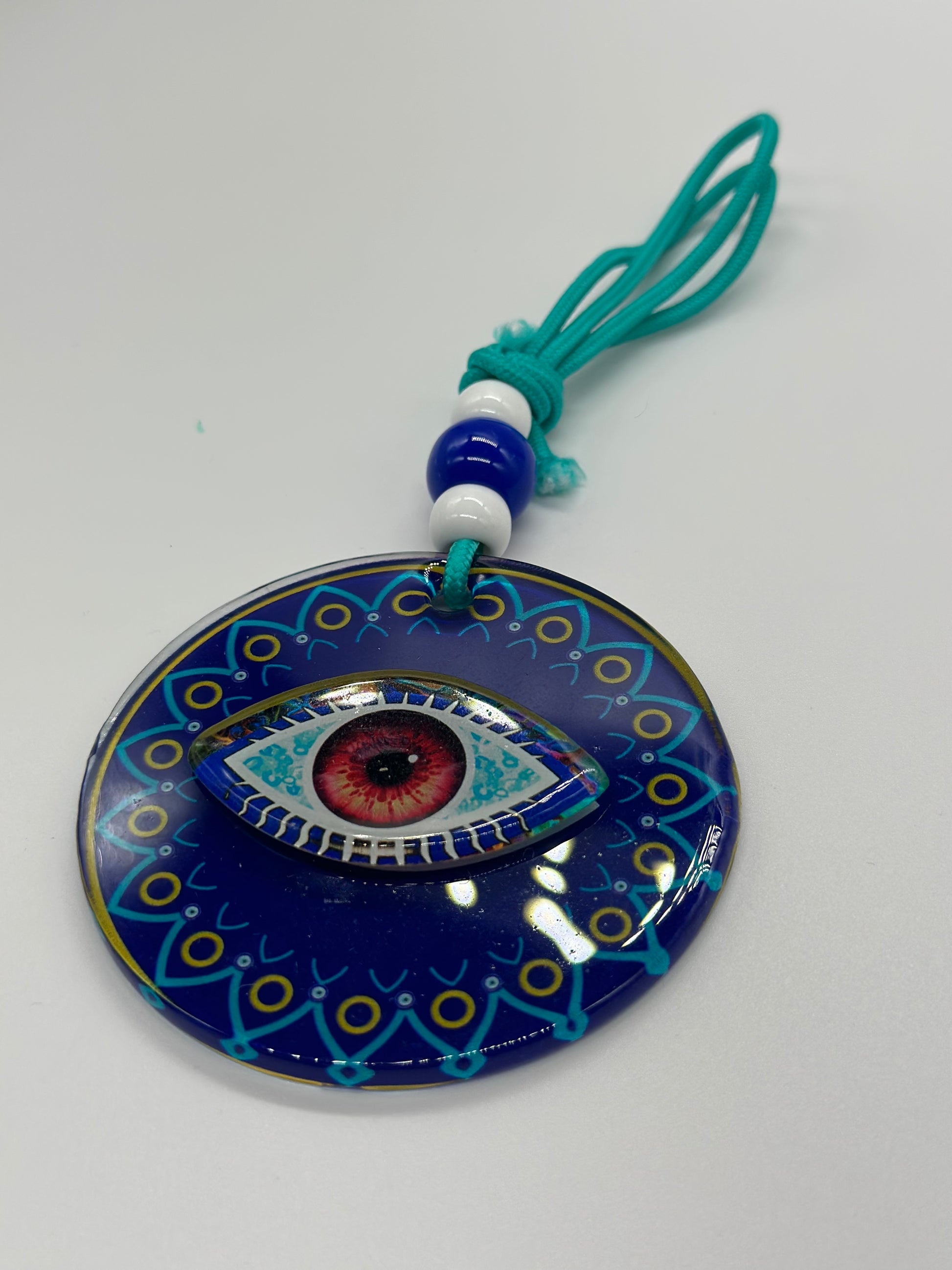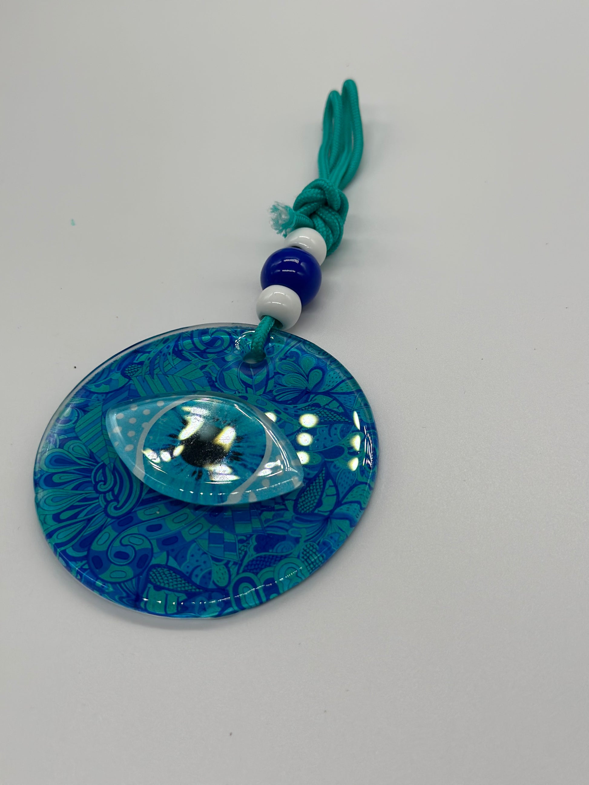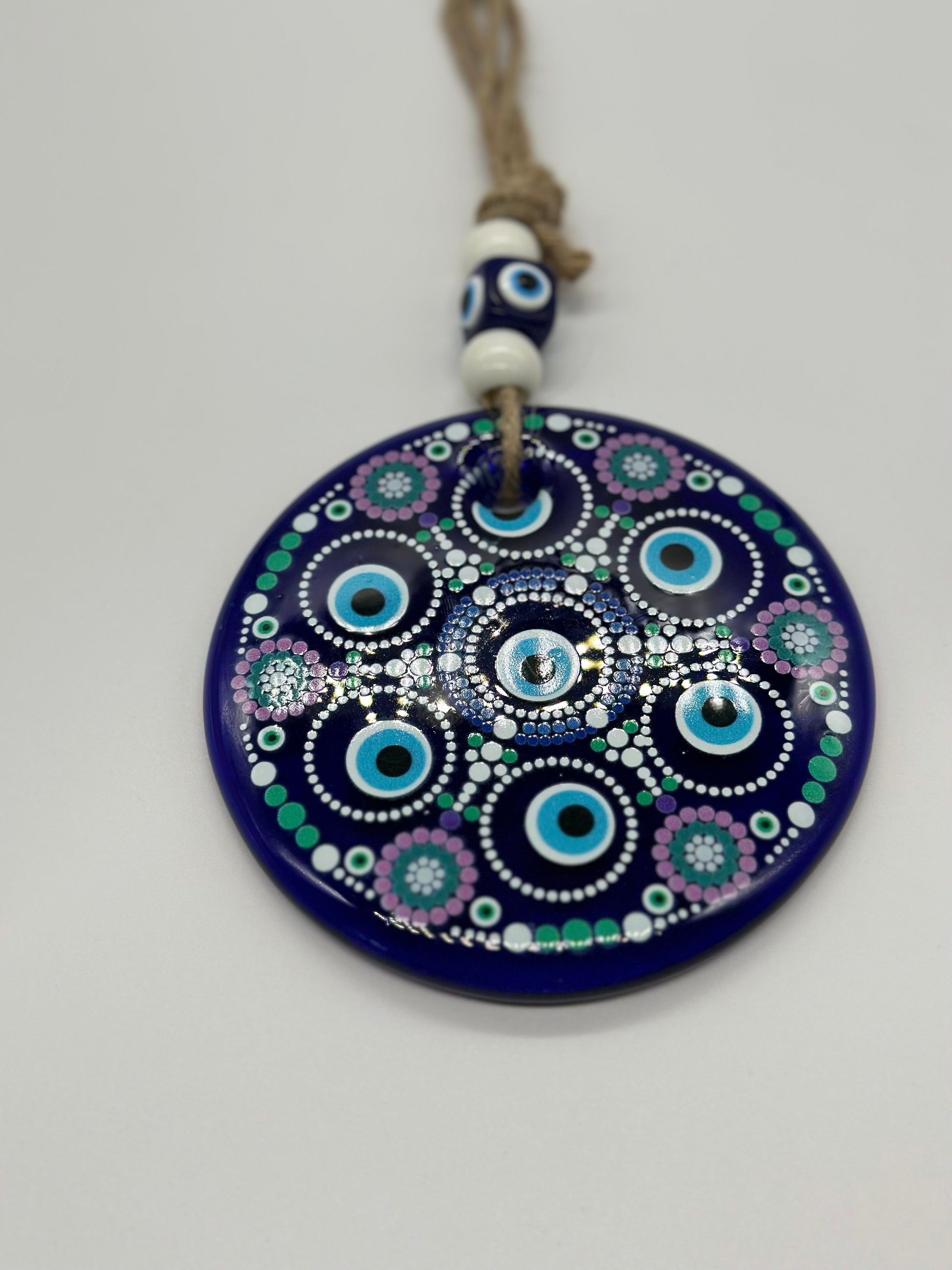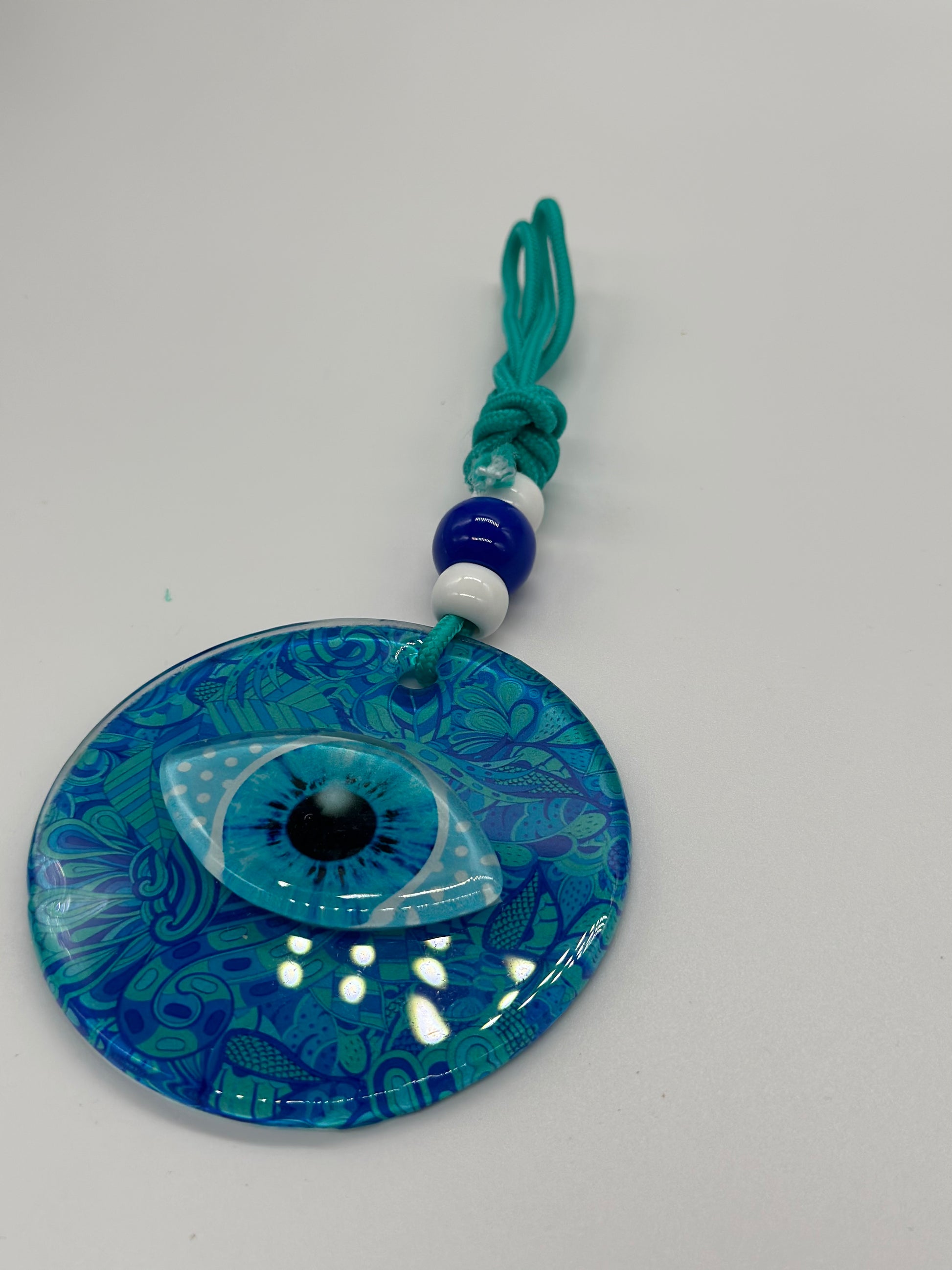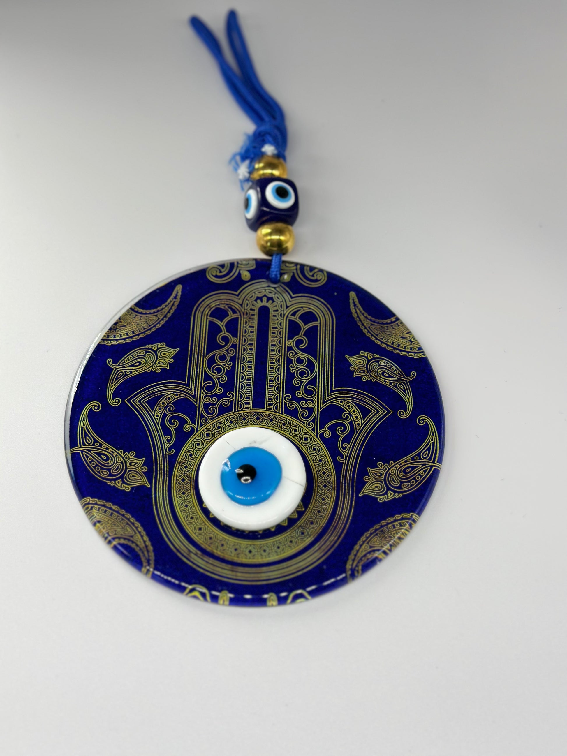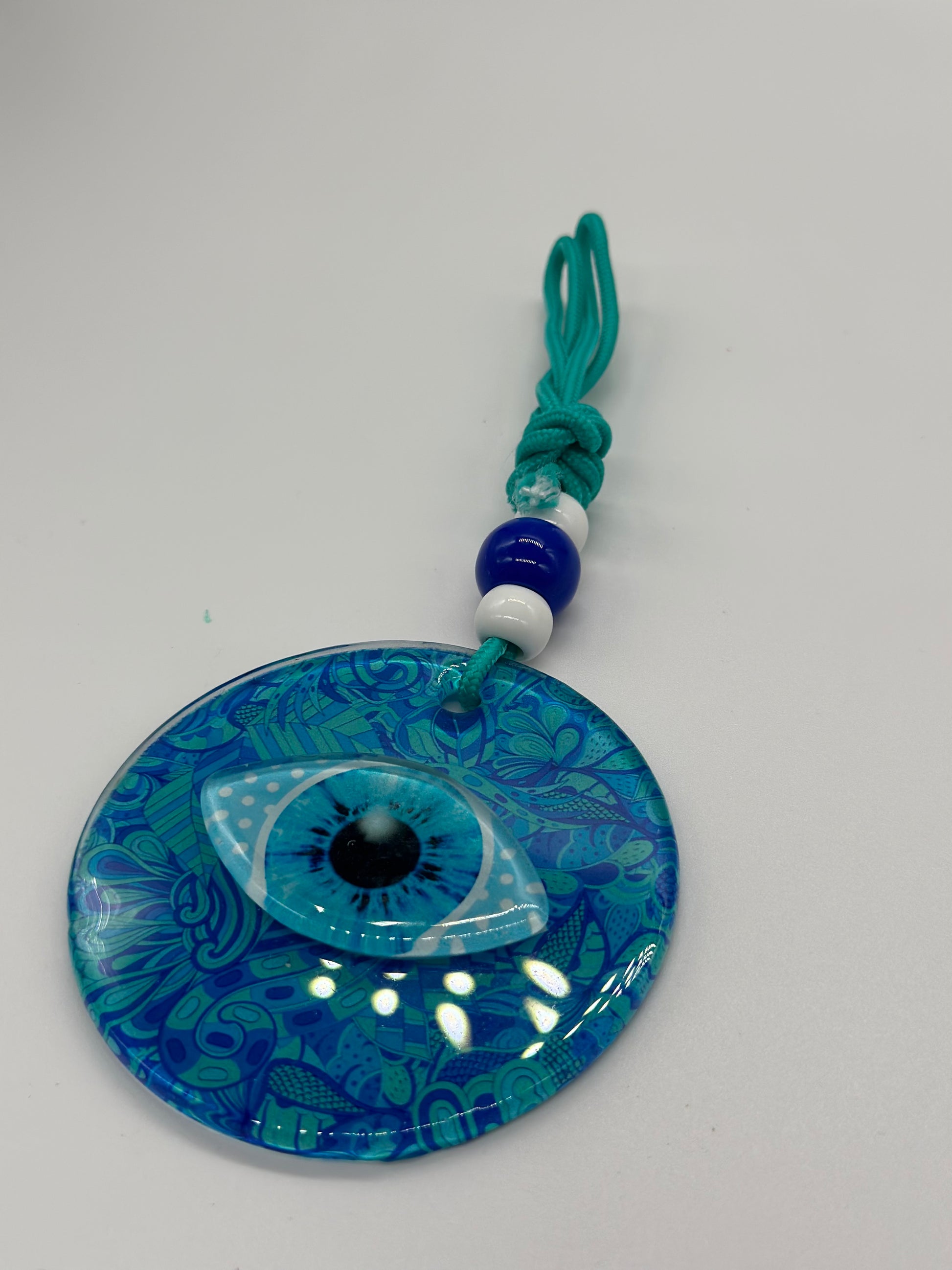 Simbología de vidrio pintados a manos y elaborados con la simbología en contra del AYIN Hará