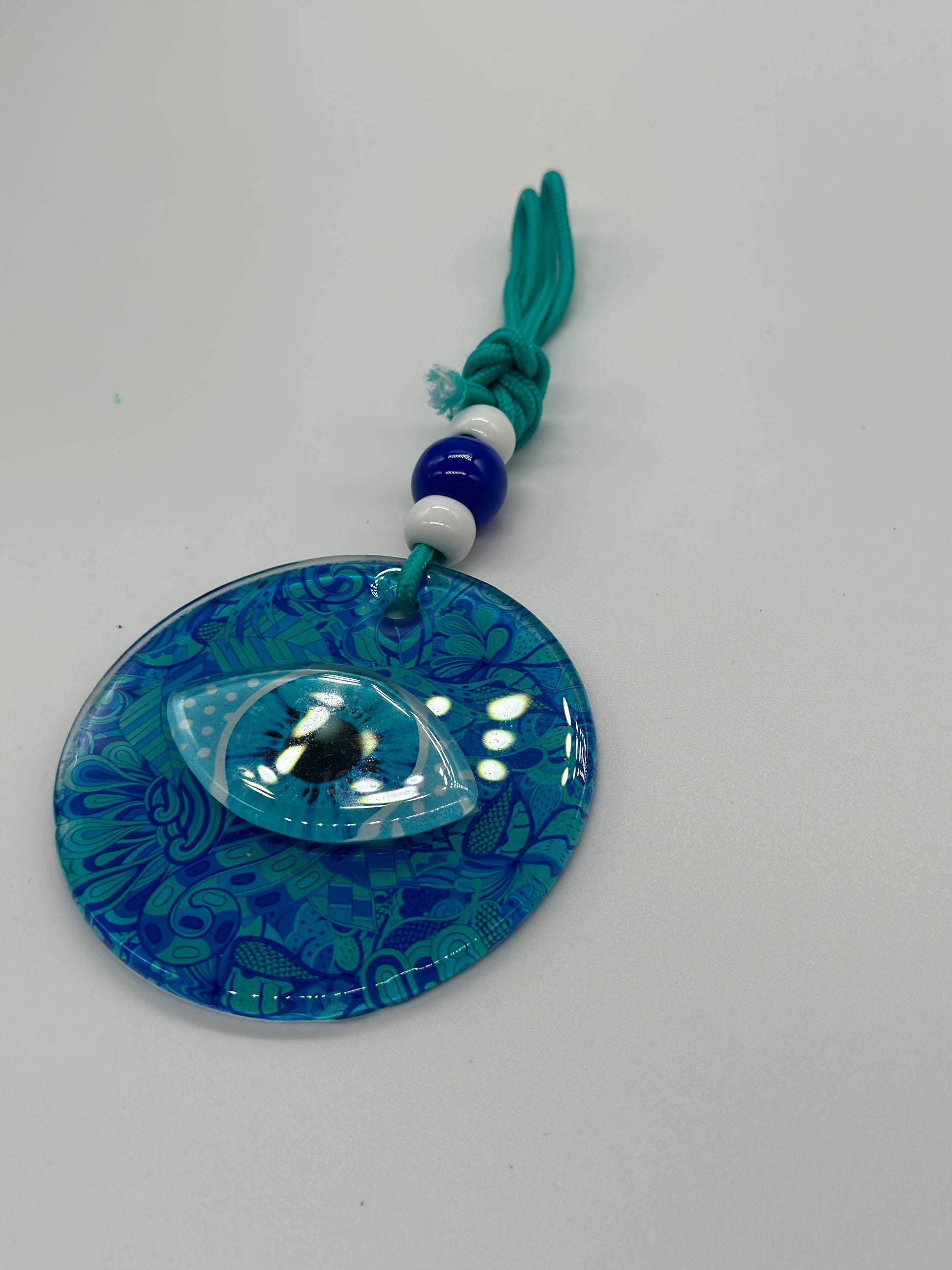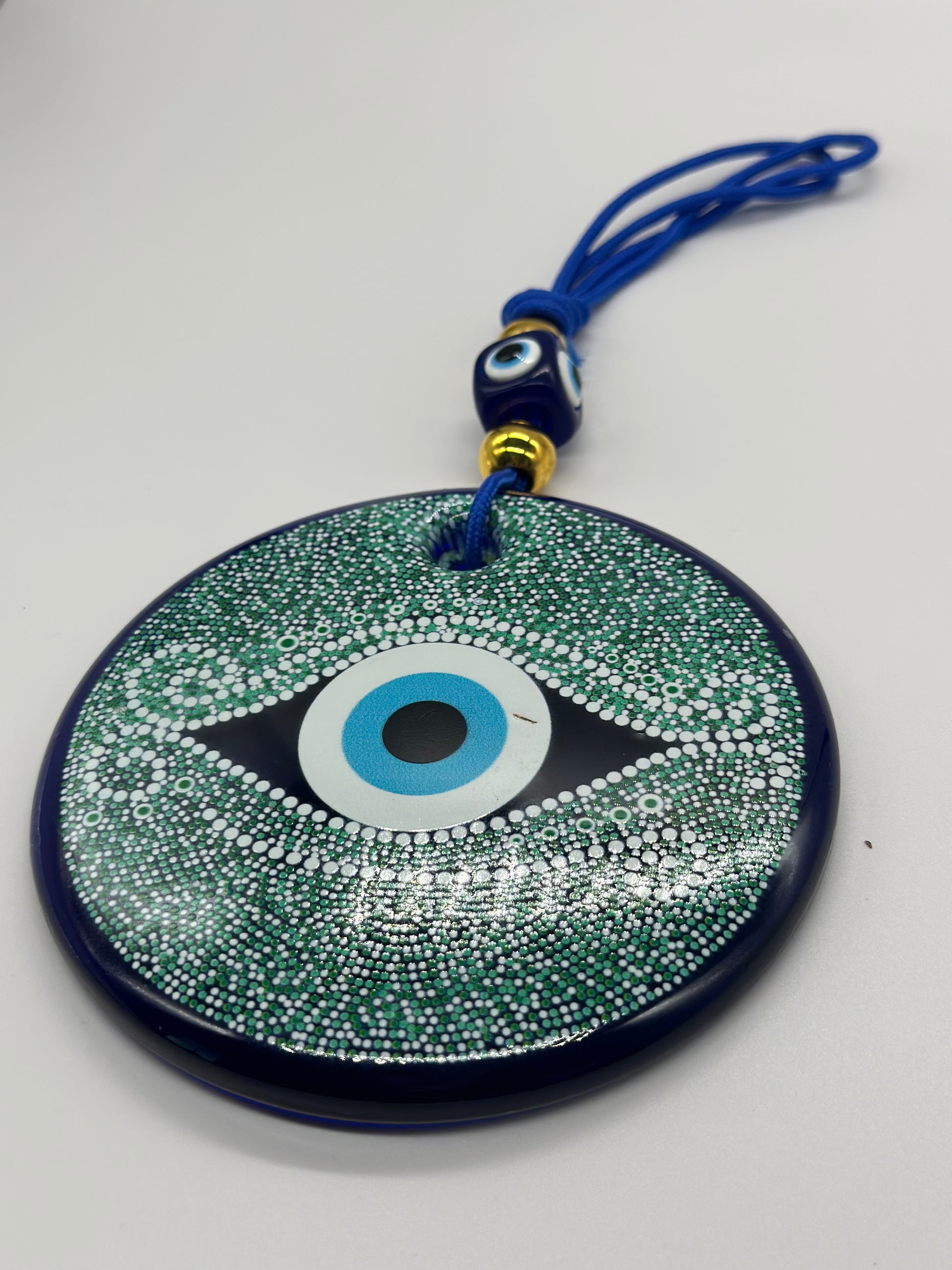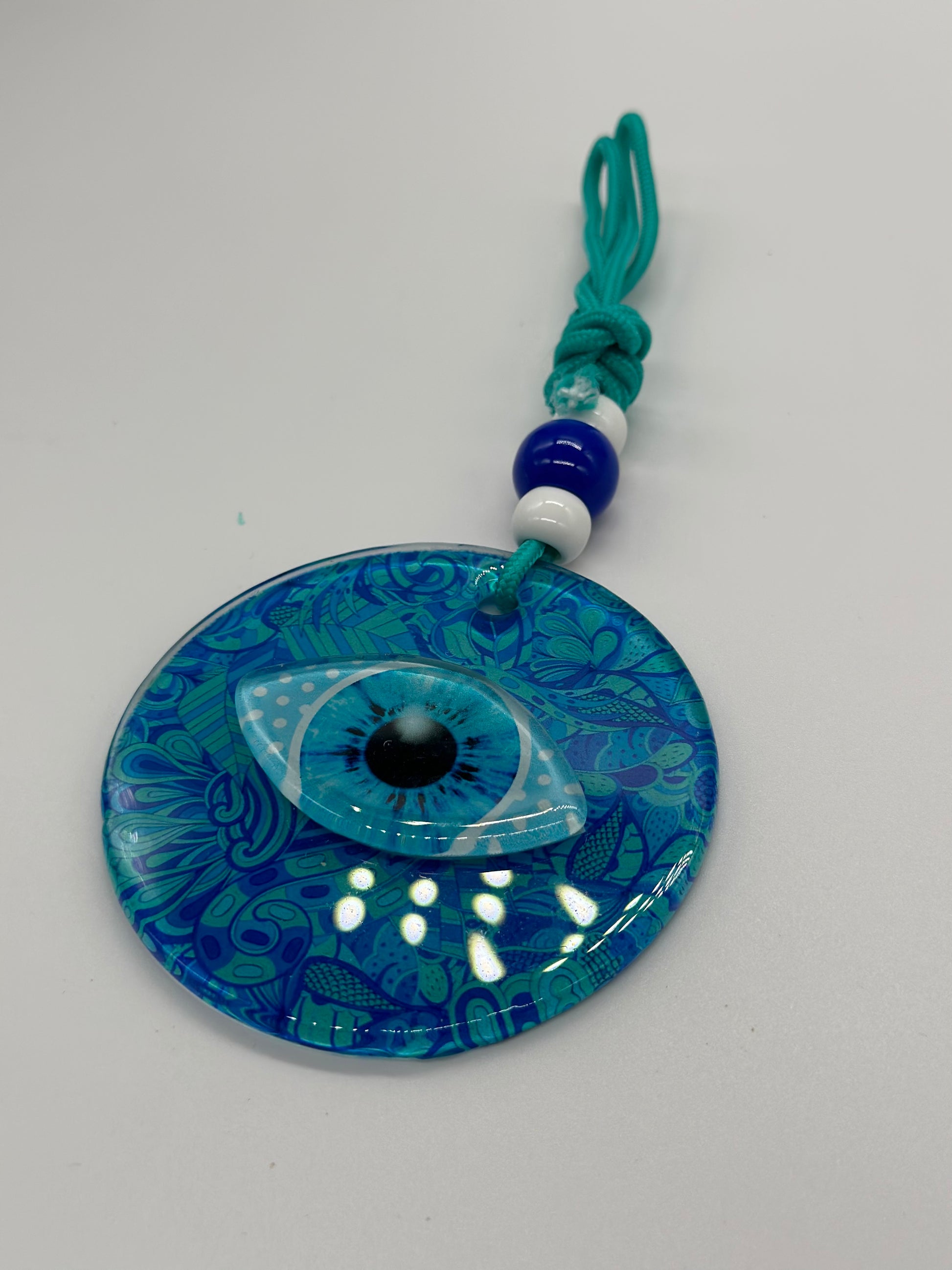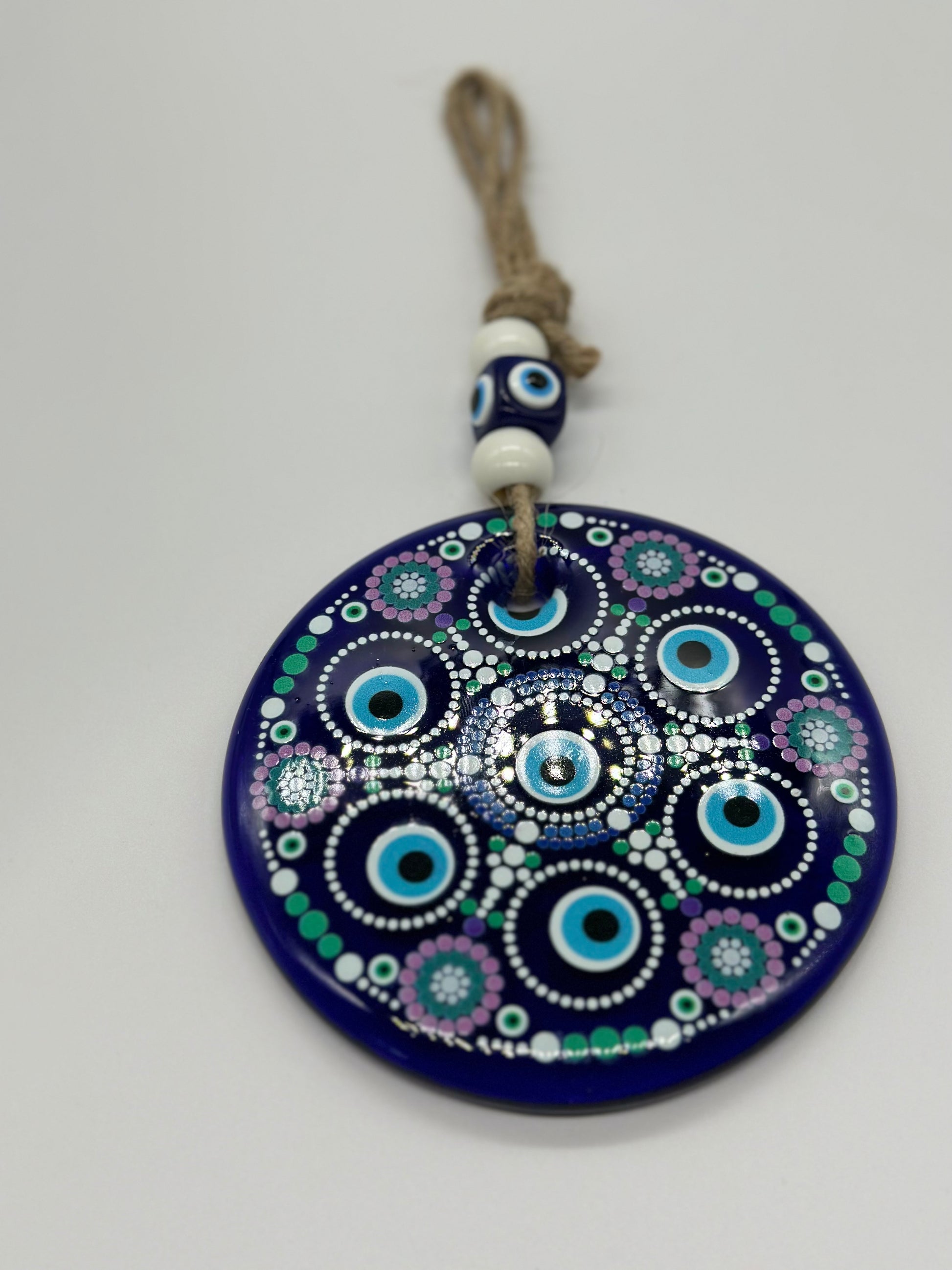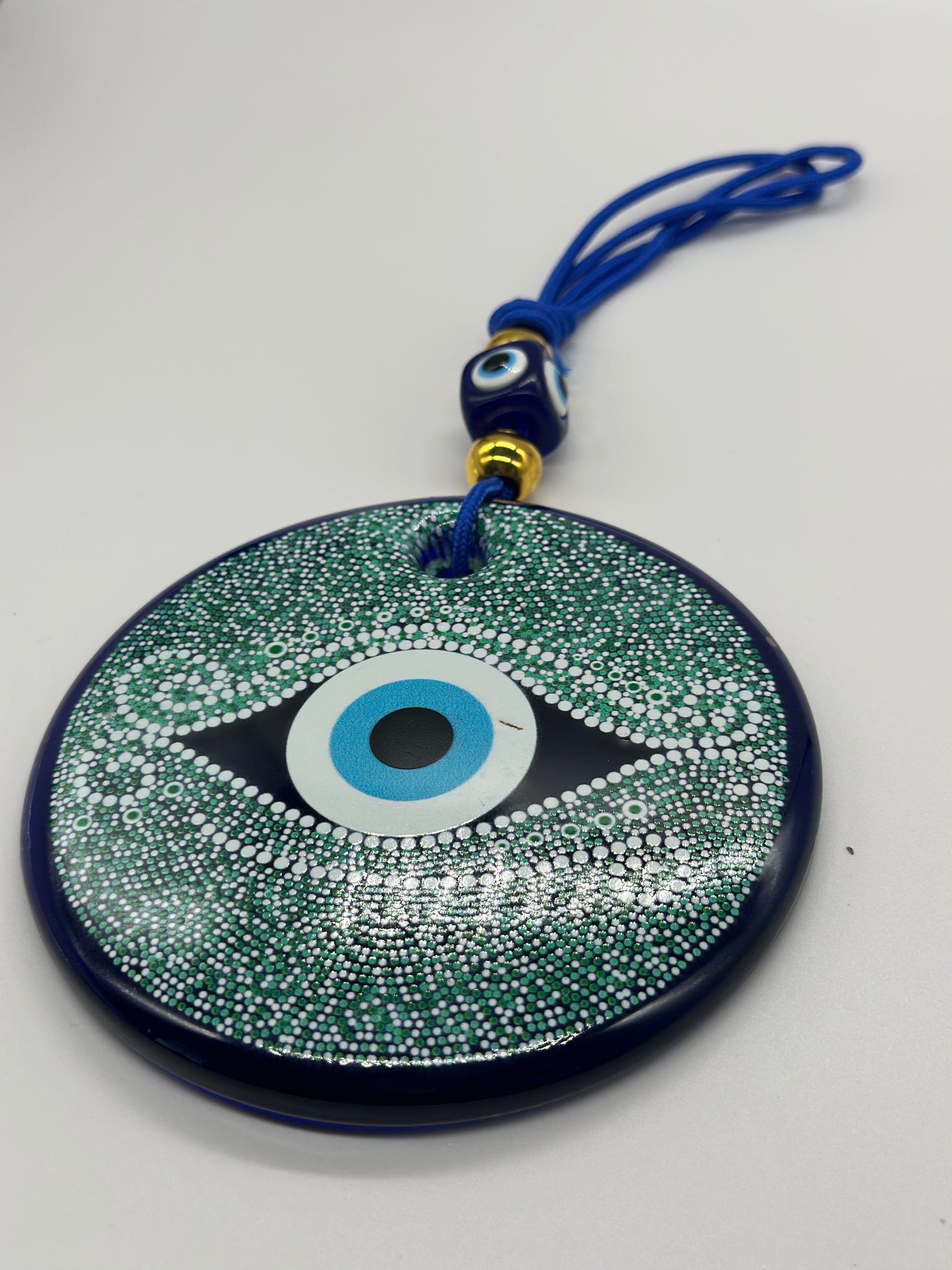 Simbología de vidrio pintados a manos y elaborados con la simbología en contra del AYIN Hará