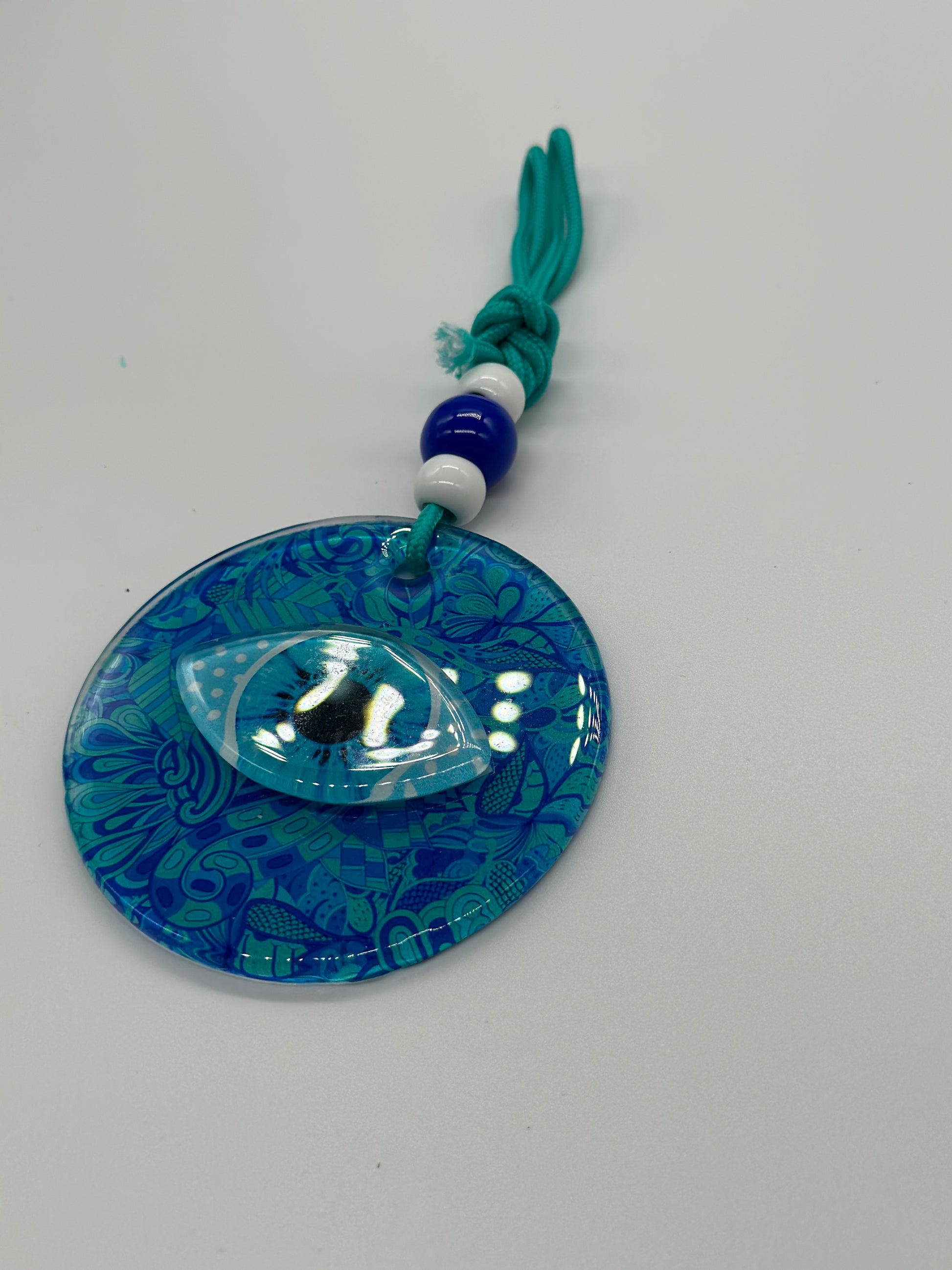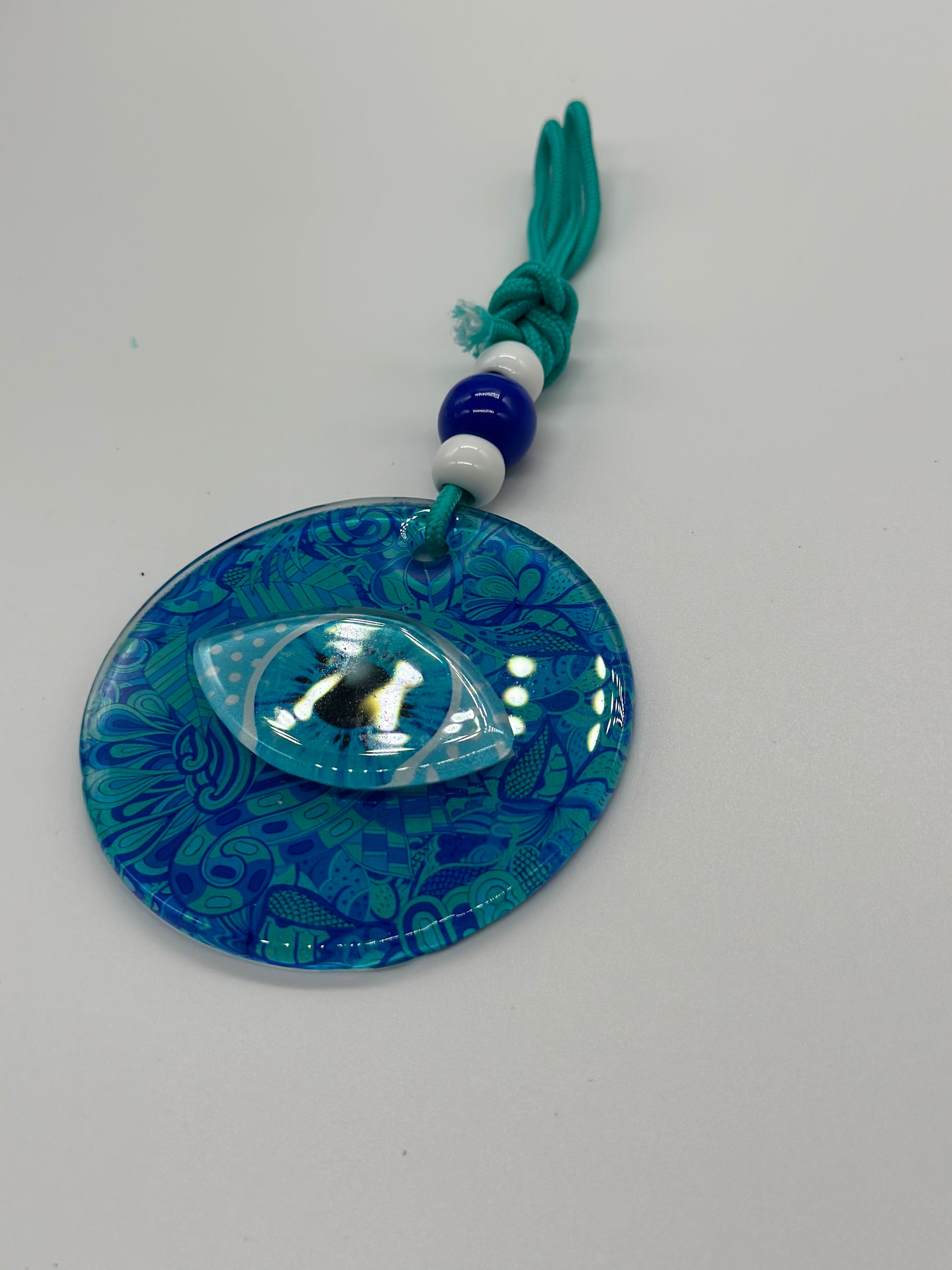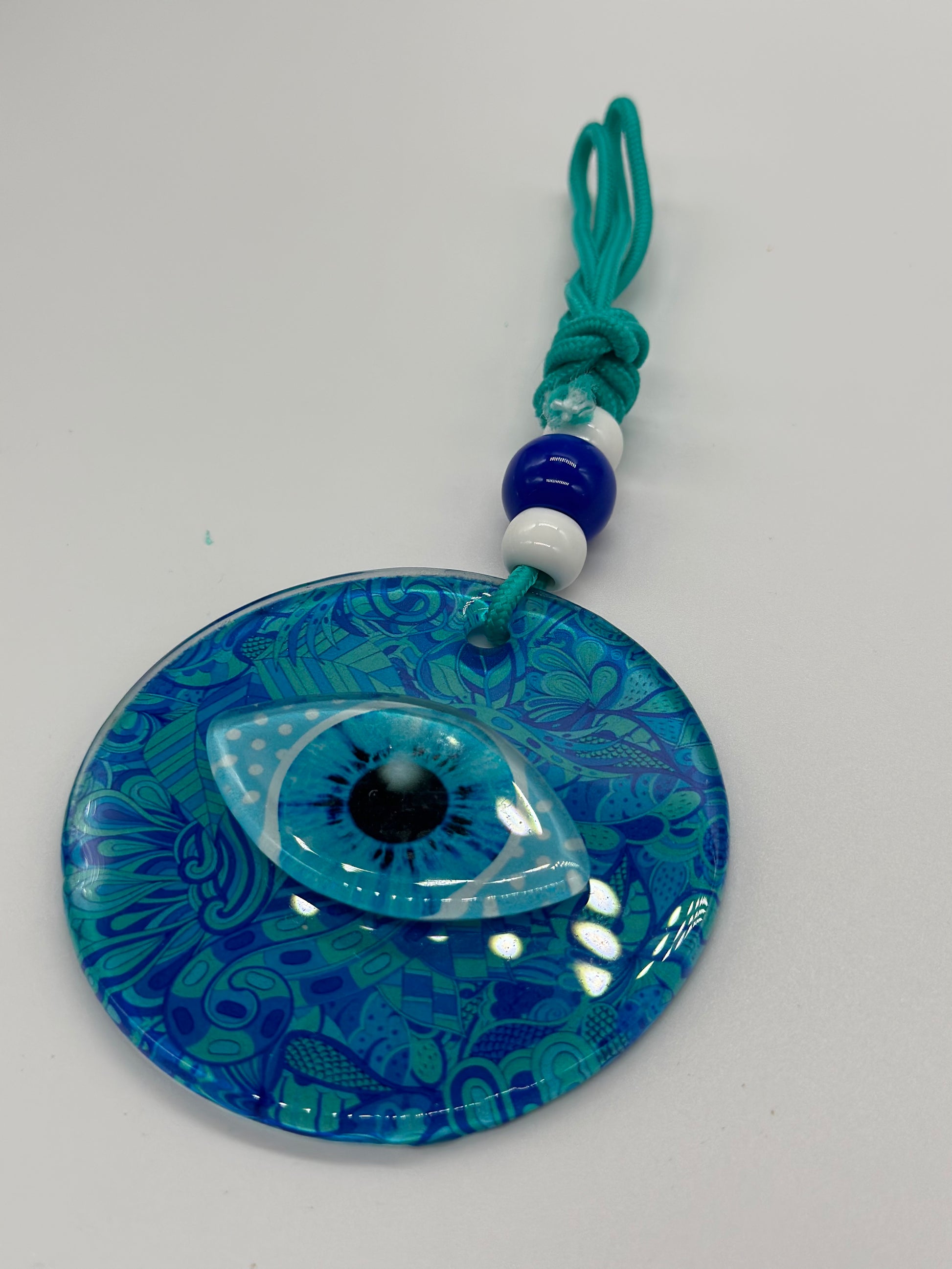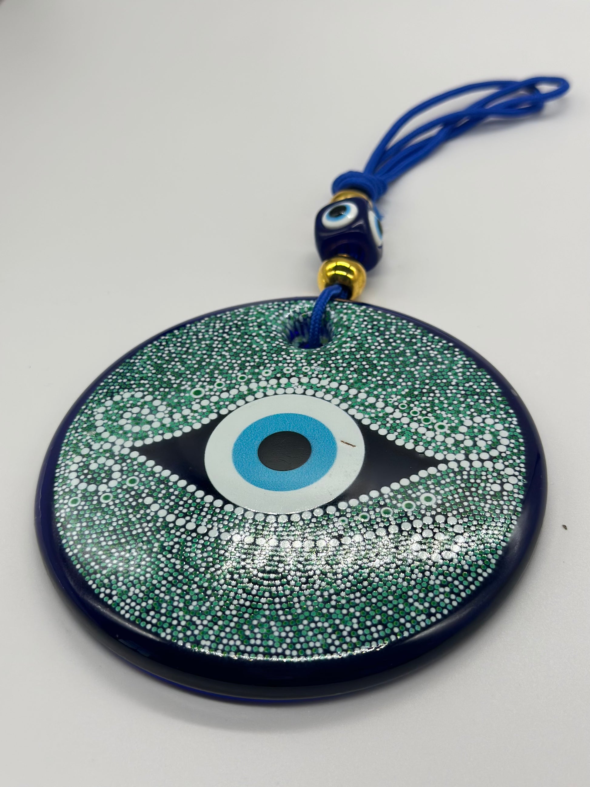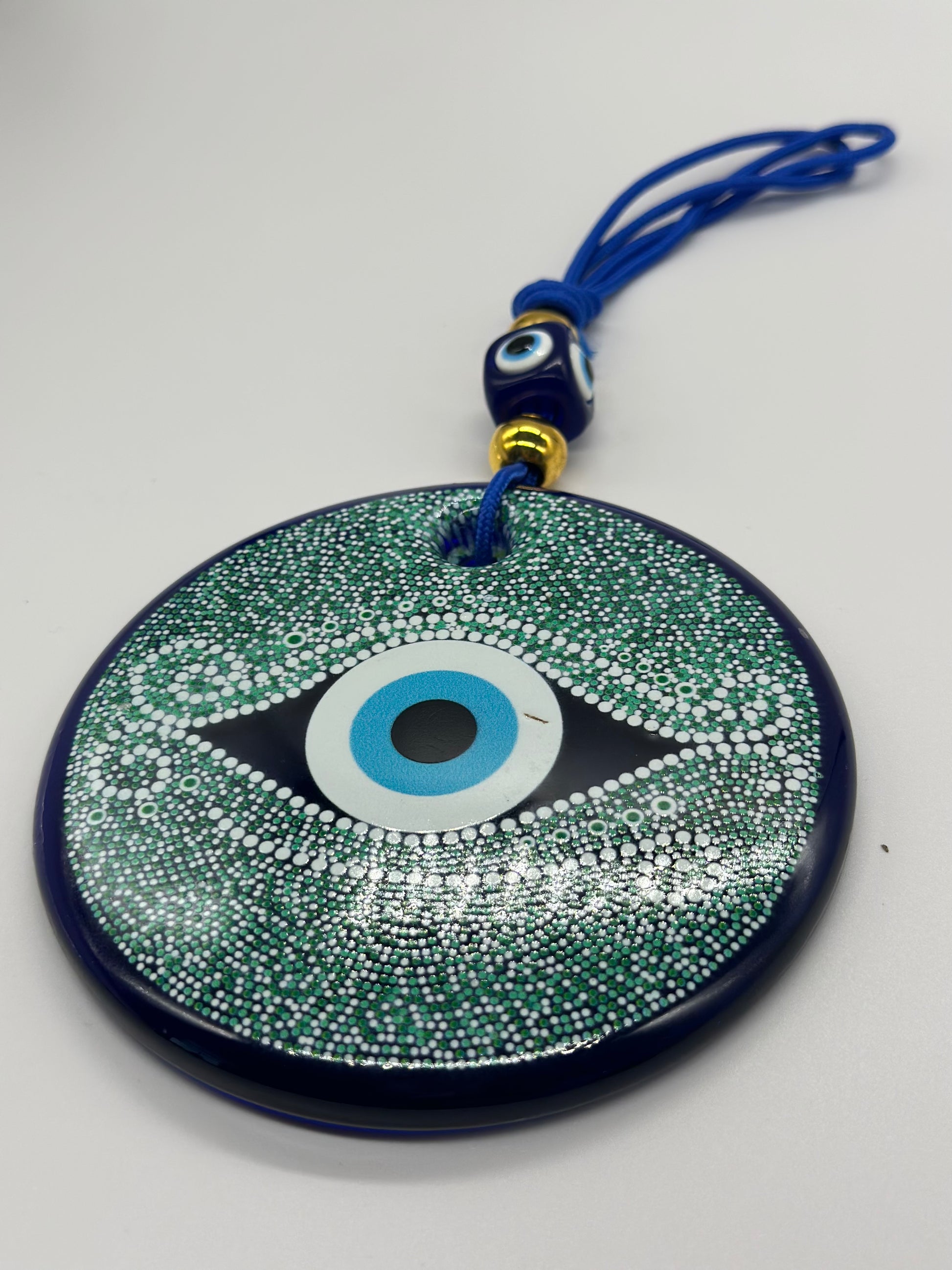 Simbología de vidrio pintados a manos y elaborados con la simbología en contra del AYIN Hará