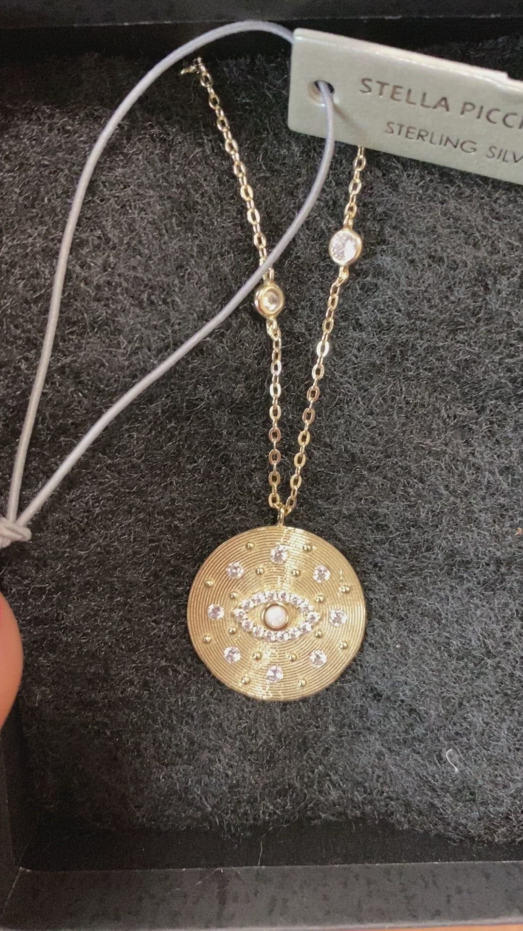 Cadena en plata con el ayin color dorado y finos brillantes