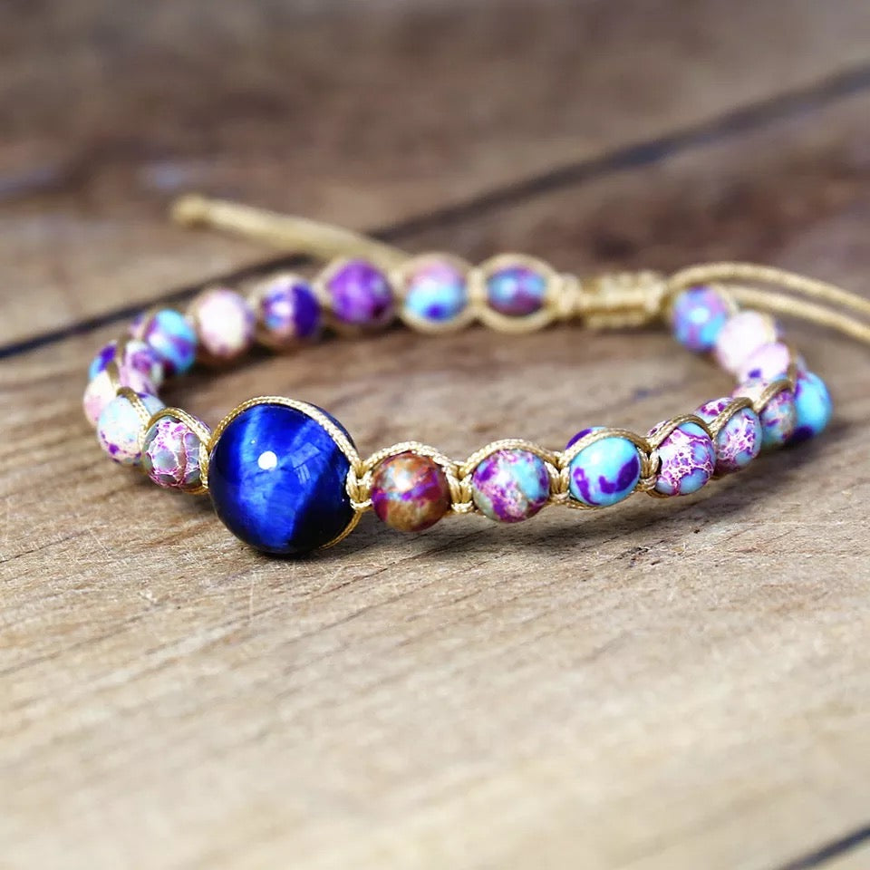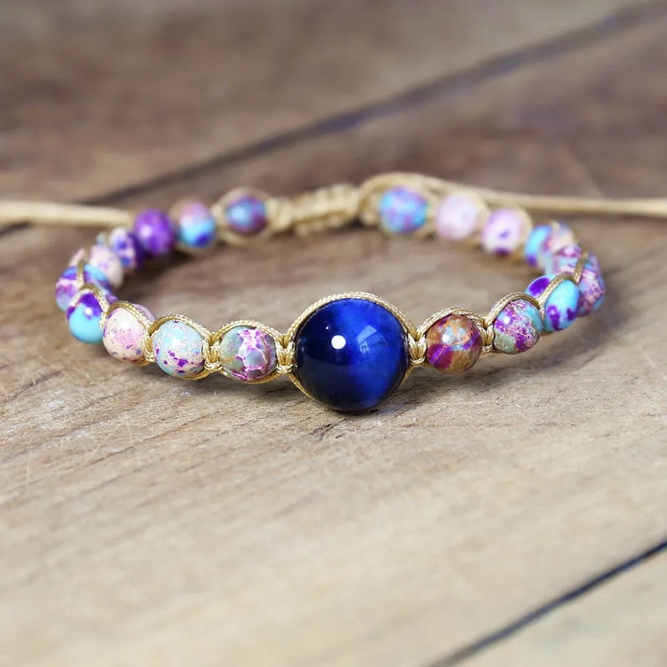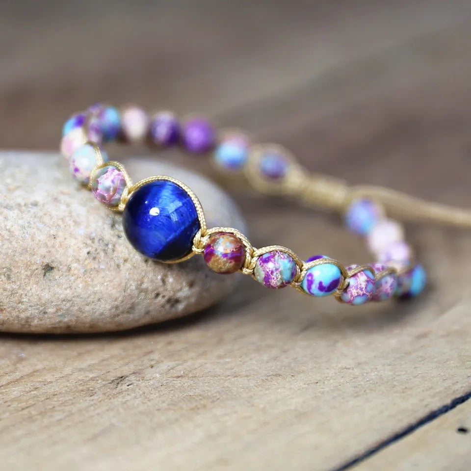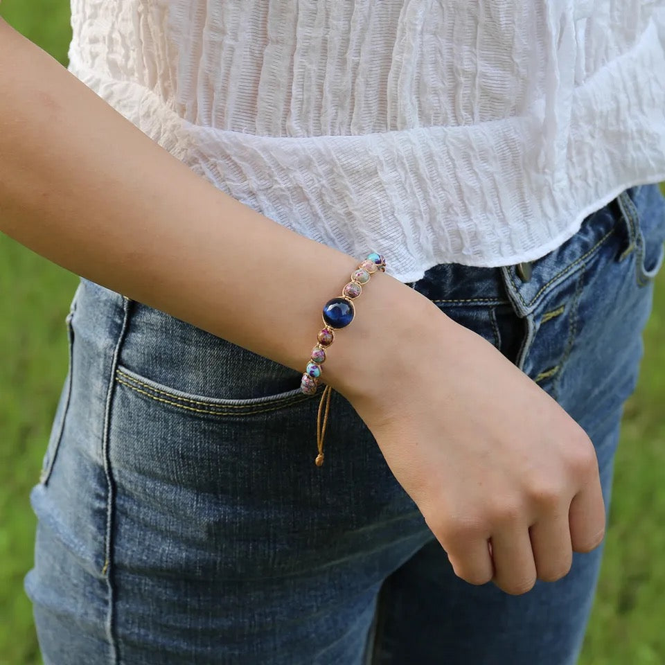 Joyería hecha a mano, pulseras con dijes de piedra Natural, pulseras trenzadas de cuerda, pulsera envolvente, bohemia colorida