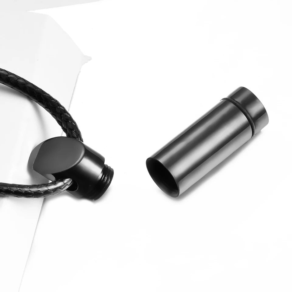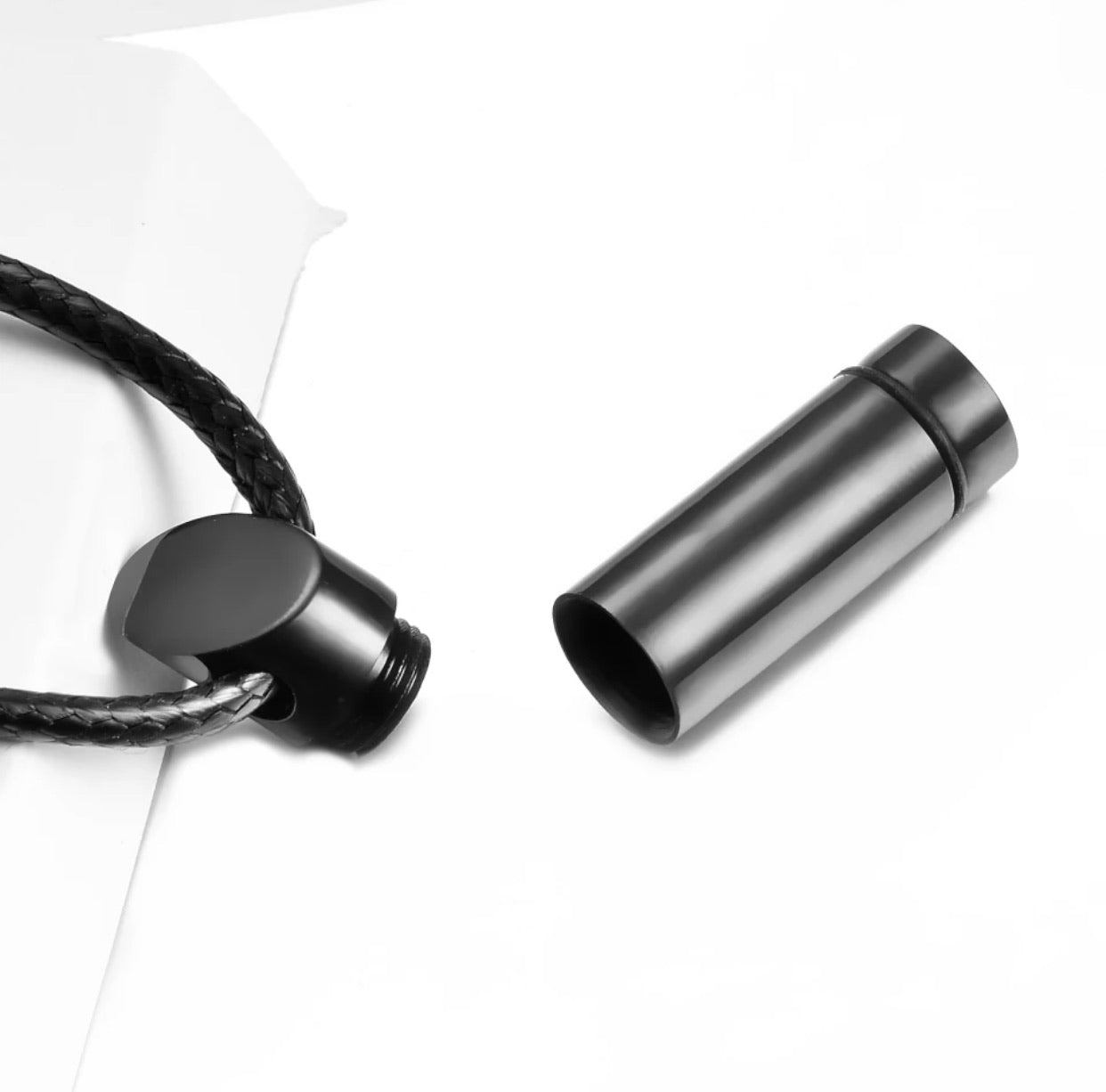 Colgante en cordón de cuero con 1 Atributo del Eterno, el que usted escoja según su necesidad y un pergamino adicional para que usted escriba su propia meta.