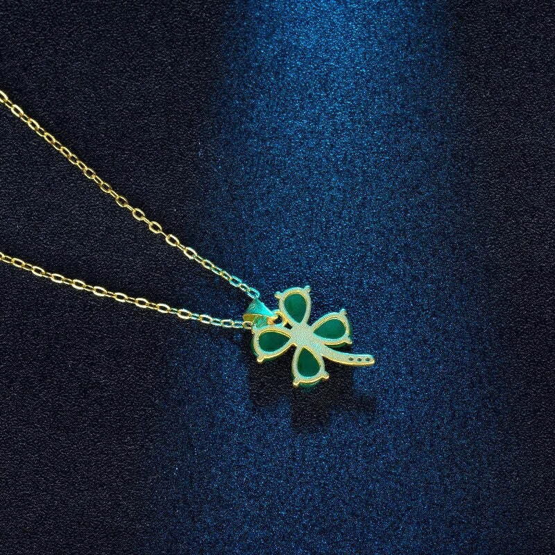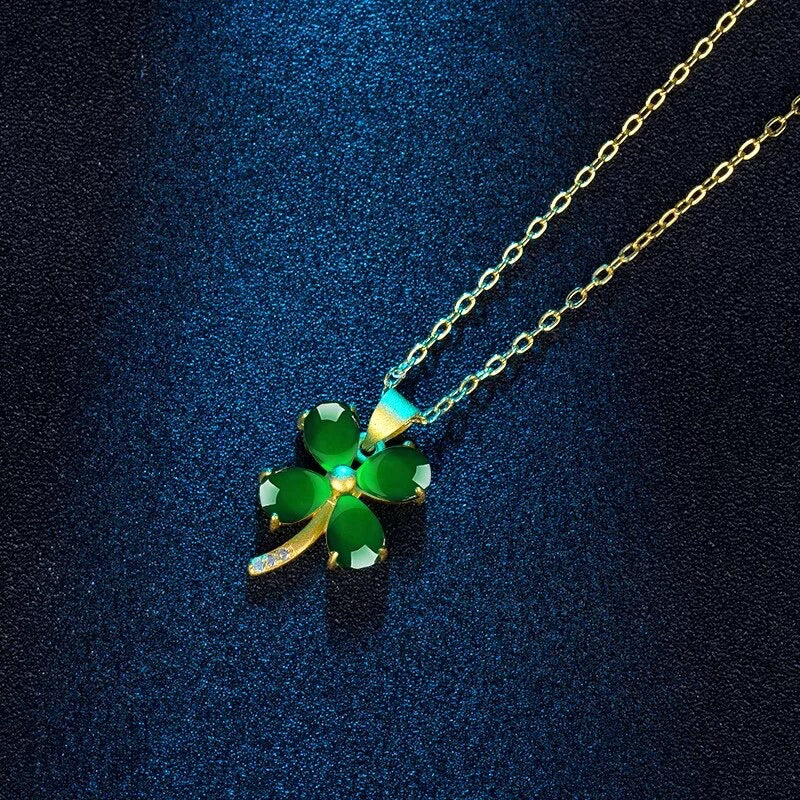 Collar con colgante de trébol de Jade verde Natural, joyería de moda de plata 925, amuleto de calcedonia