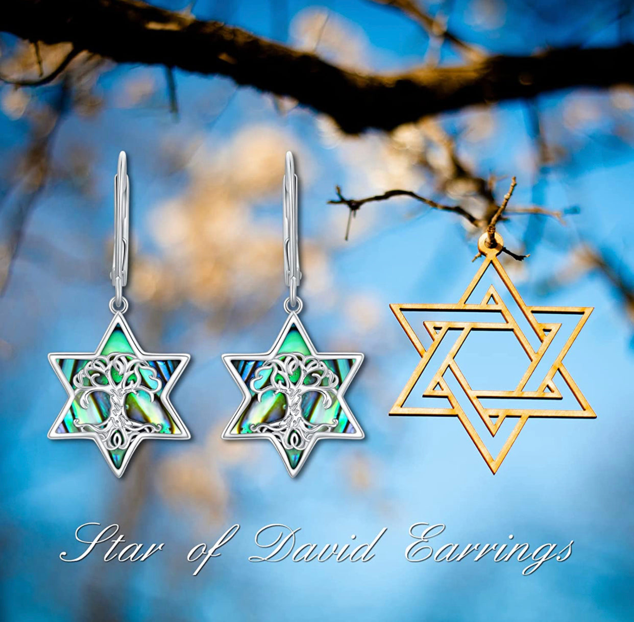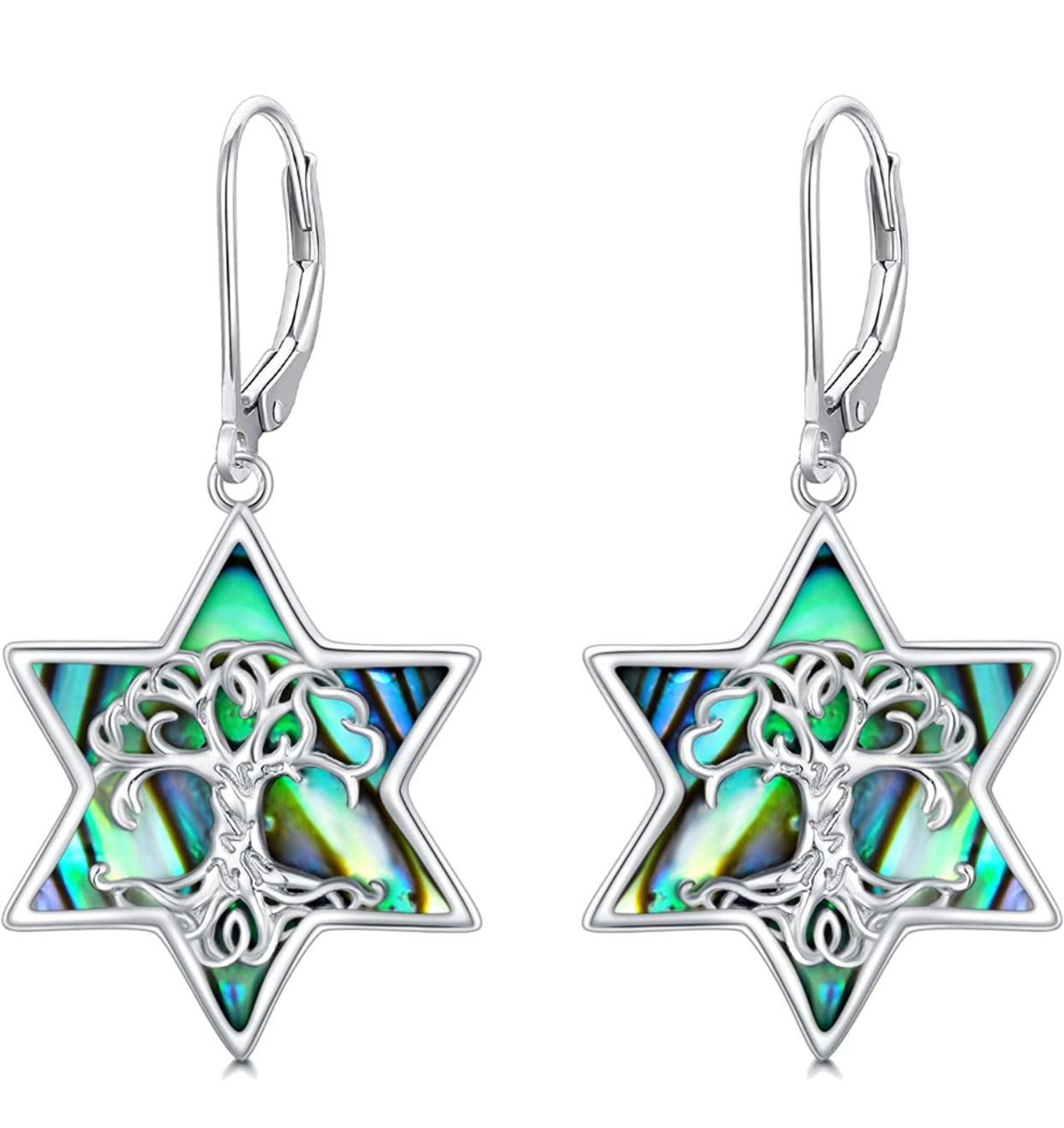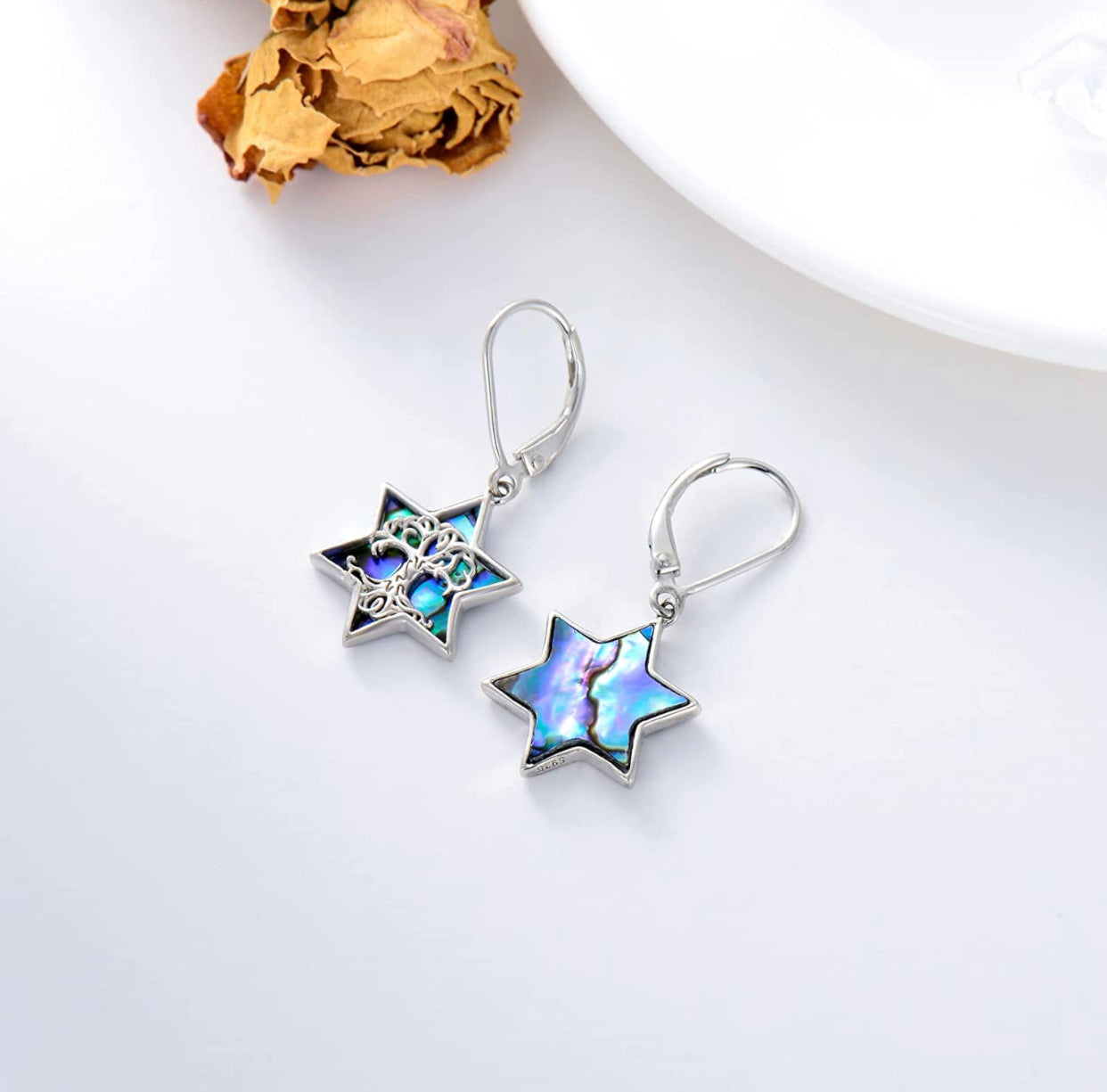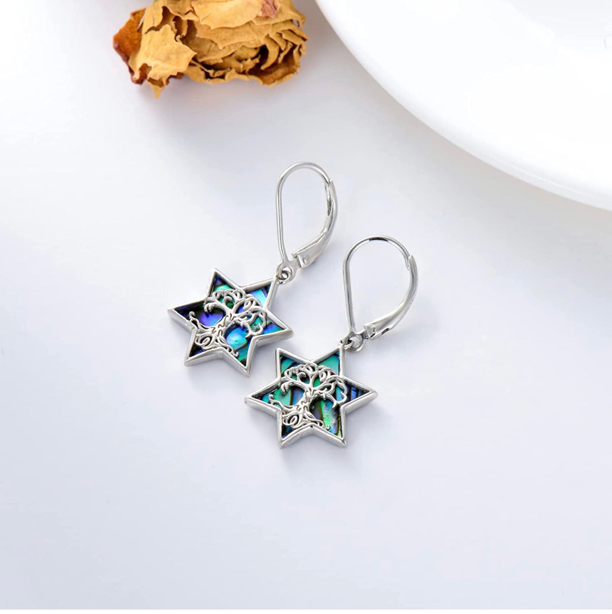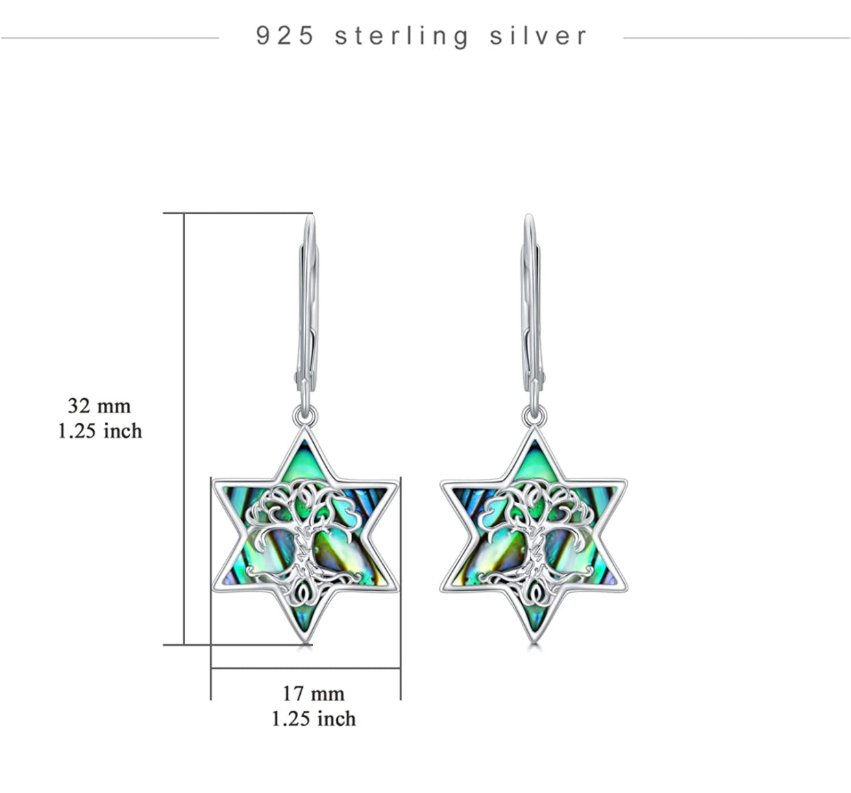 Pendientes de árbol de la vida de plata de ley S925 con concha de abulón de imitación.