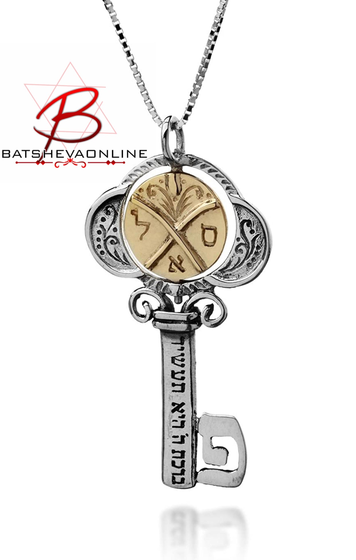 Tikun Klali Collar con colgante de llave de oración con moneda giratoria